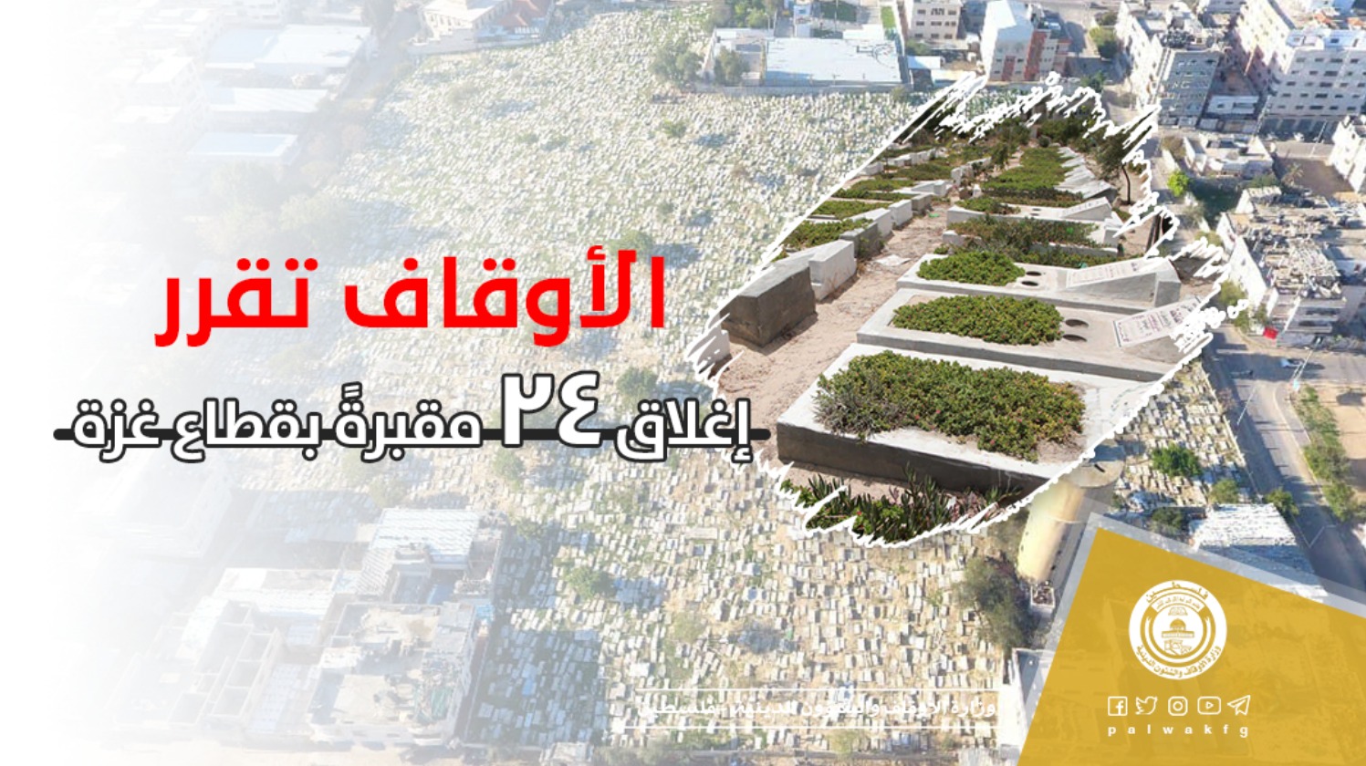 أعلنت وزارة الأوقاف والشؤون الدينية عن إغلاق 24 مقبرةً في محافظات قطاع غزة بشكل كامل، ومنع الدفن فيها, وذلك بناء على قرار متابعة العمل الحكومي رقم (161) بالتعاون مع وزارة الحكم المحلي, مؤكدة أن مَن يُخالف هذه الإجراءات سيتم اتخاذ الإجراءات القانونية بحقه.