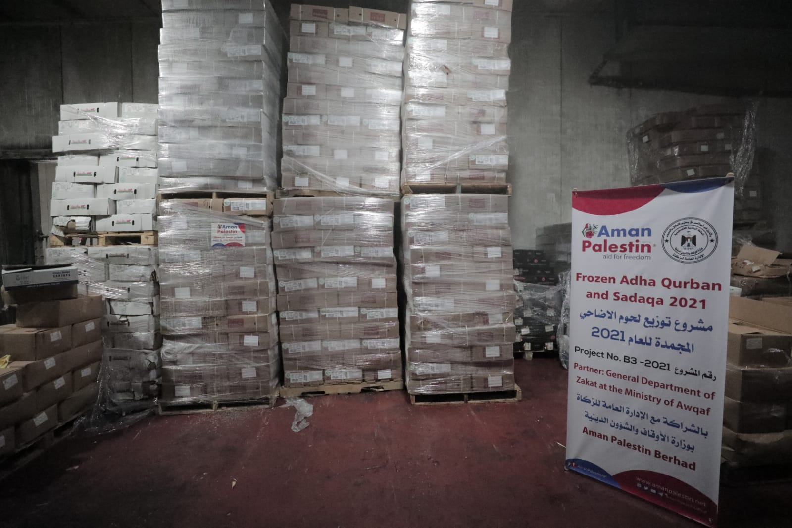 نفذت الإدارة العامة للزكاة التابعة لوزارة الأوقاف والشؤون الدينية المرحلة الأولى من مشروع توزيع لحوم الأضاحي المجمدة للعام 2021م, الذي استهدف (15.000) أسرة متعففة من خلال لجانها المنتشرة على مستوى محافظات قطاع غزة, بواقع (2) كيلو لكل أسرة, بتمويل كريم من مؤسسة "أمان فلسطين ماليزيا", و"هيئة الإغاثة الإنسانية التركية " IHH".