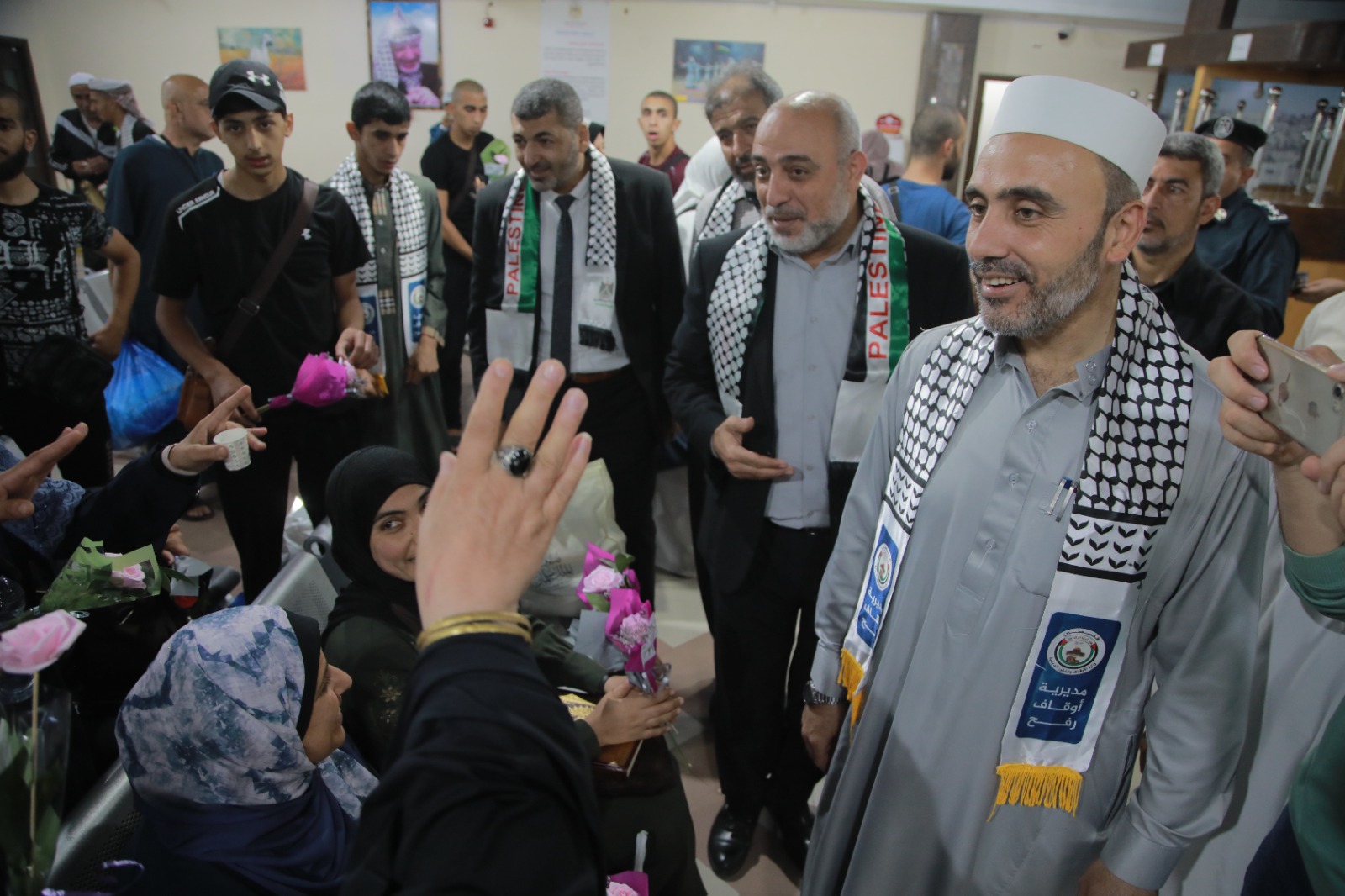 استقبل وكيل وزارة الأوقاف والشؤون الدينية د. عبدالهادي الأغا فجر اليوم الفوج الأول من حجاج مكرمة خادم الحرمين الشريفين، من ذوي الشهداء والجرحى والأسرى، عبر معبر رفح البري، بحضور وكيل وزارة الأسرى و المحررين أ. بهاء المدهون، ومدير أوقاف رفح أ. محمد أبو عامر، ولفيف من الموظفين وادارة معبر رفح.