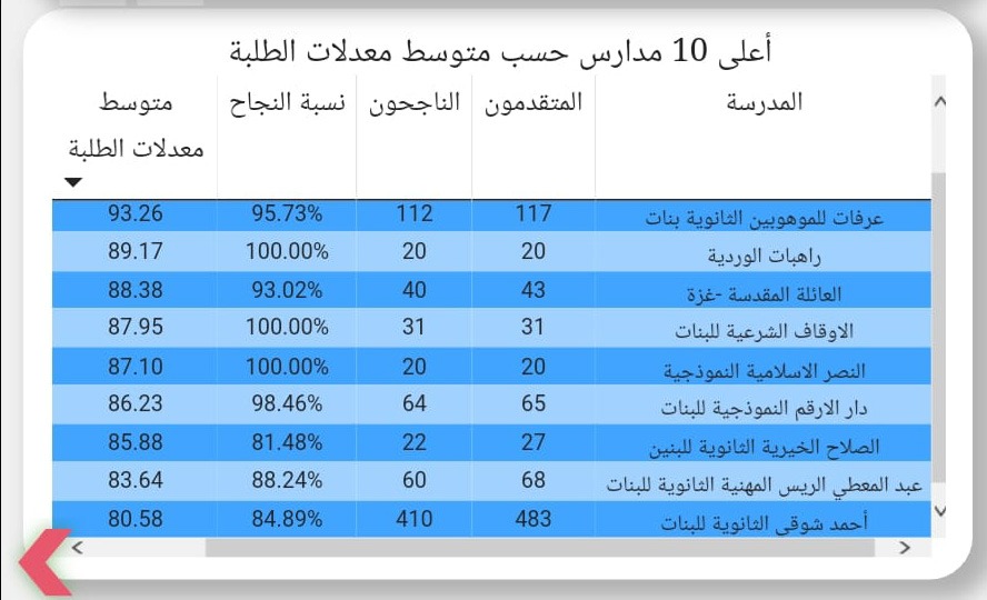 حصلت مدرس الأوقاف الشرعية للبنات التابعة لوزارة الأوقاف والشؤون الدينية على المركز الرابع ضمن أعلى 10 مدارس حسب متوسط معدلات الطلبة في الثانوية العامة على مستوى قطاع غزة، وذلك بنسبة نجاح بلغت 100%.