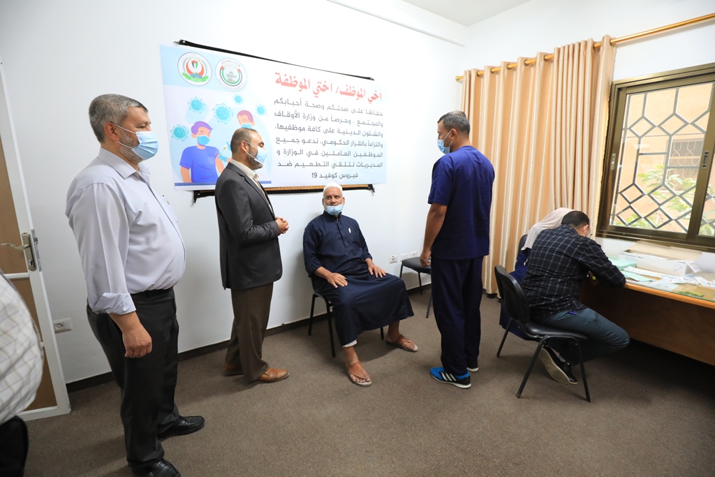 نفذت وزارة الأوقاف والشؤون الدينية بالتعاون مع وزارة الصحة حملة تطعيم لموظفيها في مقر الوزارة والمديريات الخمس وكافة مرافقها ضد فايروس كورونا، والتي تأتي ضمن الخطوات الحكومية لحماية الموظف والأسرة والمجتمع الفلسطيني من مخاطر هذا الوباء.