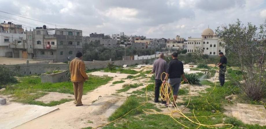 الأوقاف تنفذ حملة لرش الأعشاب بمقابر محافظة غزة
