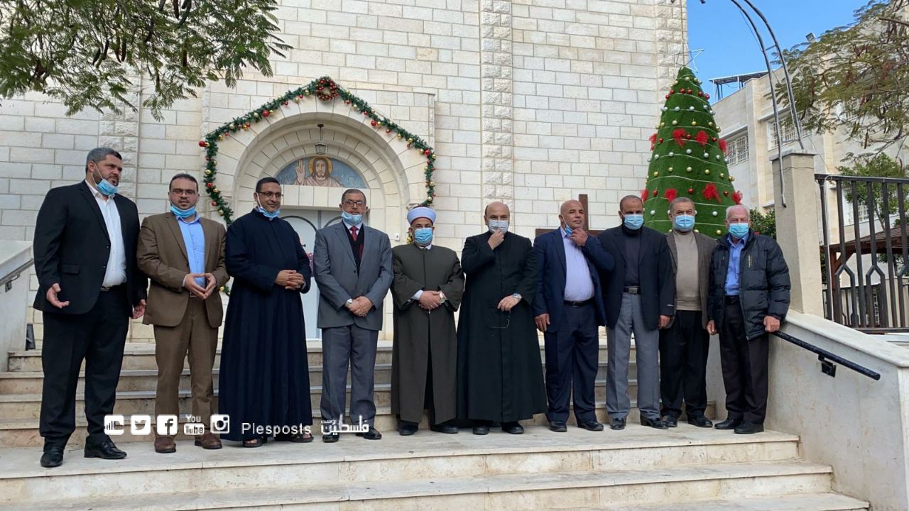وفد من الأوقاف يشارك بزيارة الأب جبرائيل راعي الكنيسة المقدسة بغزة لتهنئته بالسلامة