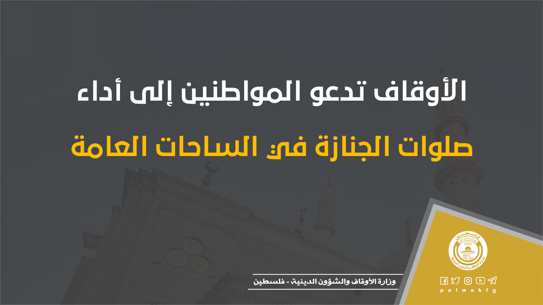 نظرًا لازدياد الحالة الوبائية في قطاع غزة، ومن أجل الحفاظ على أرواح الناس، دعت وزارة الأوقاف والشؤون الدينية المواطنين إلى أداء صلوات الجنازة في الساحات العامة، وعدم تأديتها في المساجد بسبب ما تشهده من زحام ومخالفة لإجراءات السلامة.