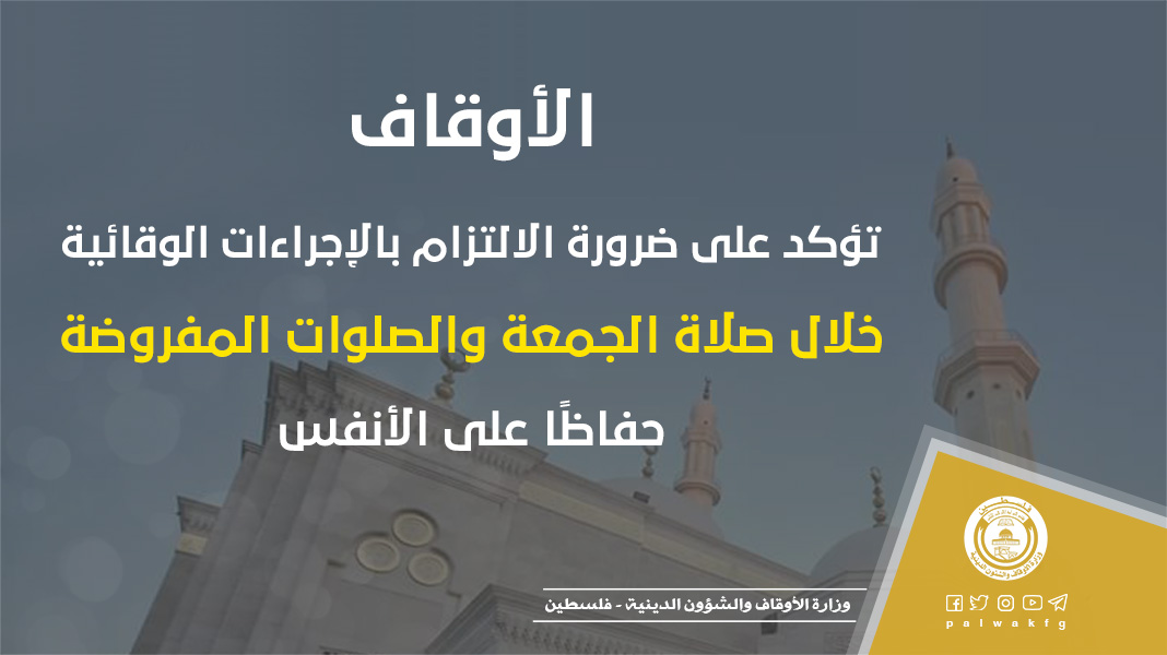 الأوقاف تؤكد على ضرورة الالتزام بالإجراءات الوقائية خلال صلاة الجمعة والصلوات المفروضة حفاظًا على الأنفس