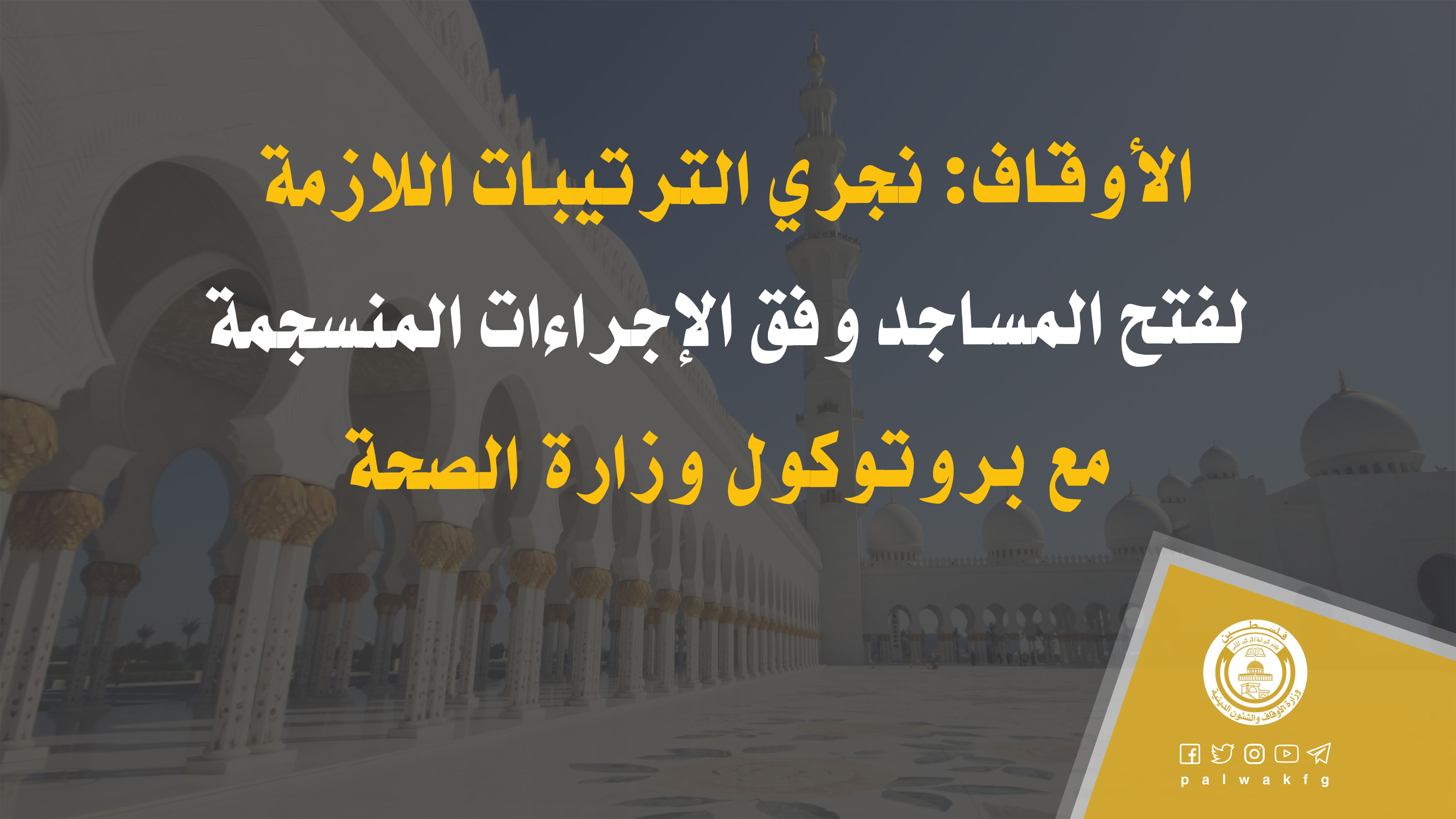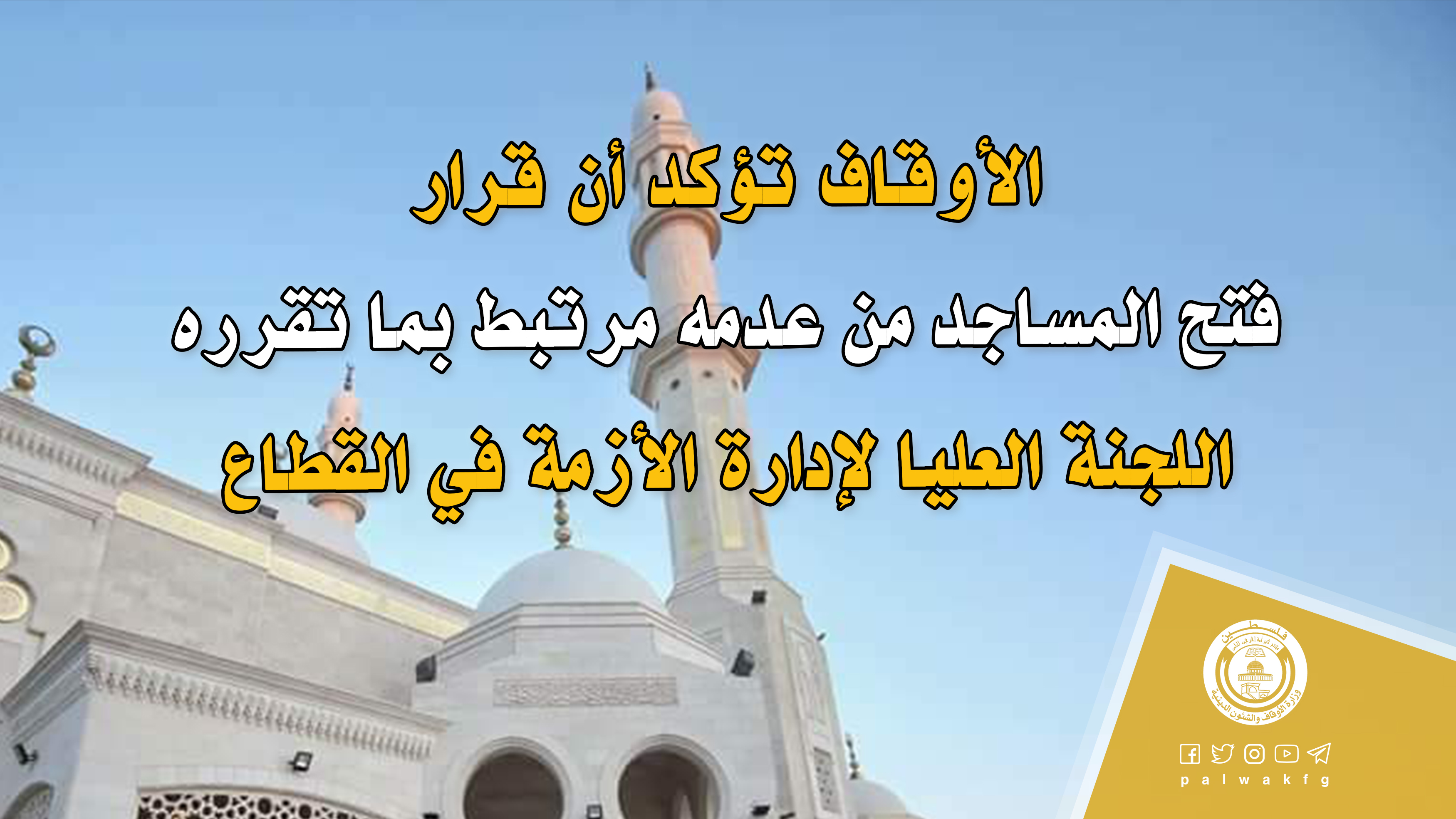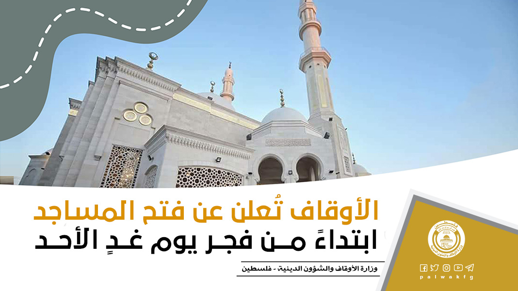 الأوقاف تُعلن عن فتح المساجد ابتداءً من فجر يوم غدٍ الأحد