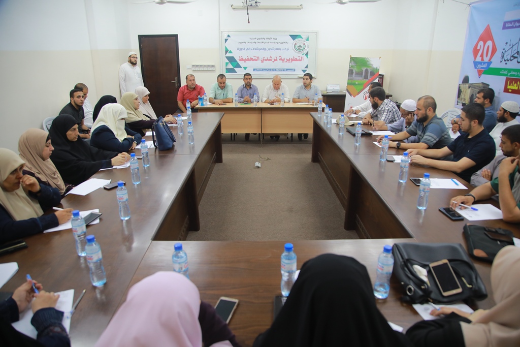 عقدت الإدارة العامة لتحفيظ القرآن الكريم بوزارة الأوقاف والشئون الدينية بالتعاون مع مؤسسة إبداع للأبحاث والدراسات والتدريب لقاءً تدريبيًا بعنوان "تطوير مهارات مرشدي التحفيظ, استهدفت 40 مرشد ومرشدة على مستوى محافظات القطاع بواقع 5 ساعات تدريبية.