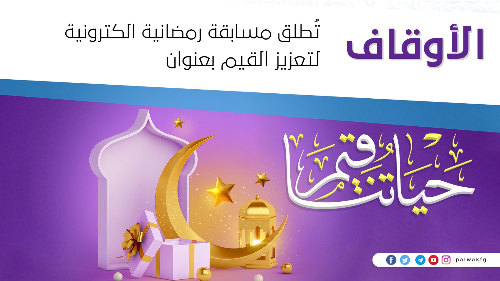 أطلقت وزارة الأوقاف والشئون الدينية بغزة بالشراكة مع اللجنة الوطنية لتعزيز السلوك القيمي، مسابقة رمضانية إلكترونية بعنوان "حياتنا قيم" من أجل تعزيز القيم ونشر ثقافتها لدى النشء.
