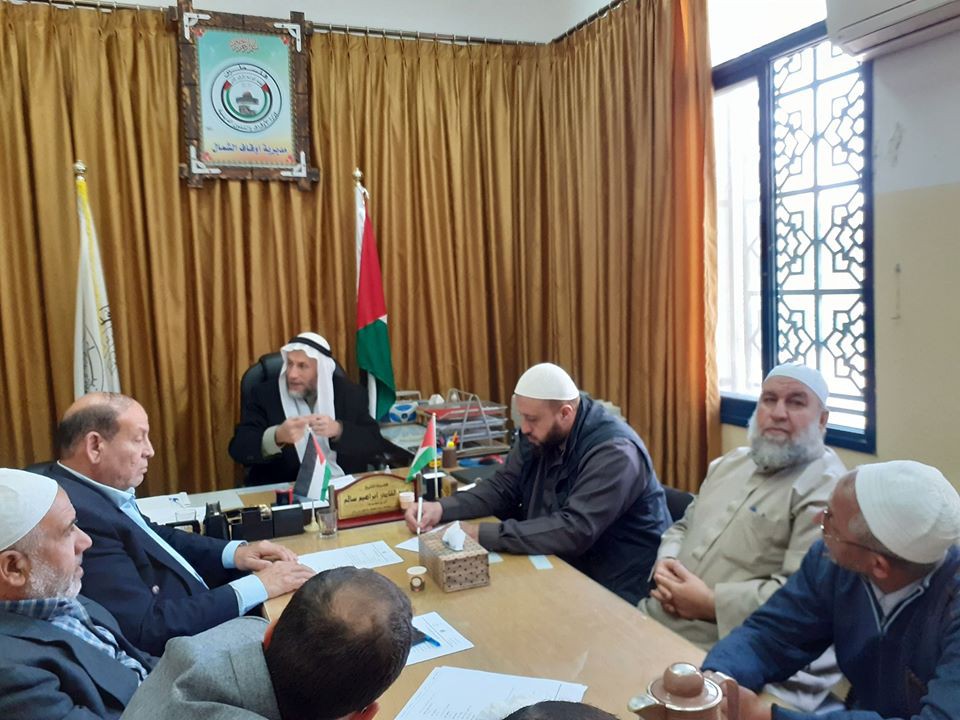 أوقاف رفح تبحث سبل التعاون وآليات مواجهة فايروس كورونا مع مجلس شباب عائلات رفح