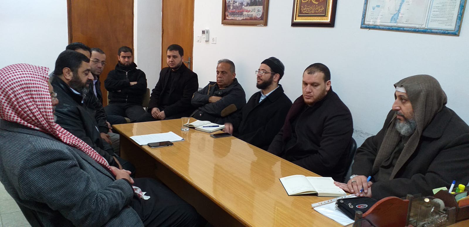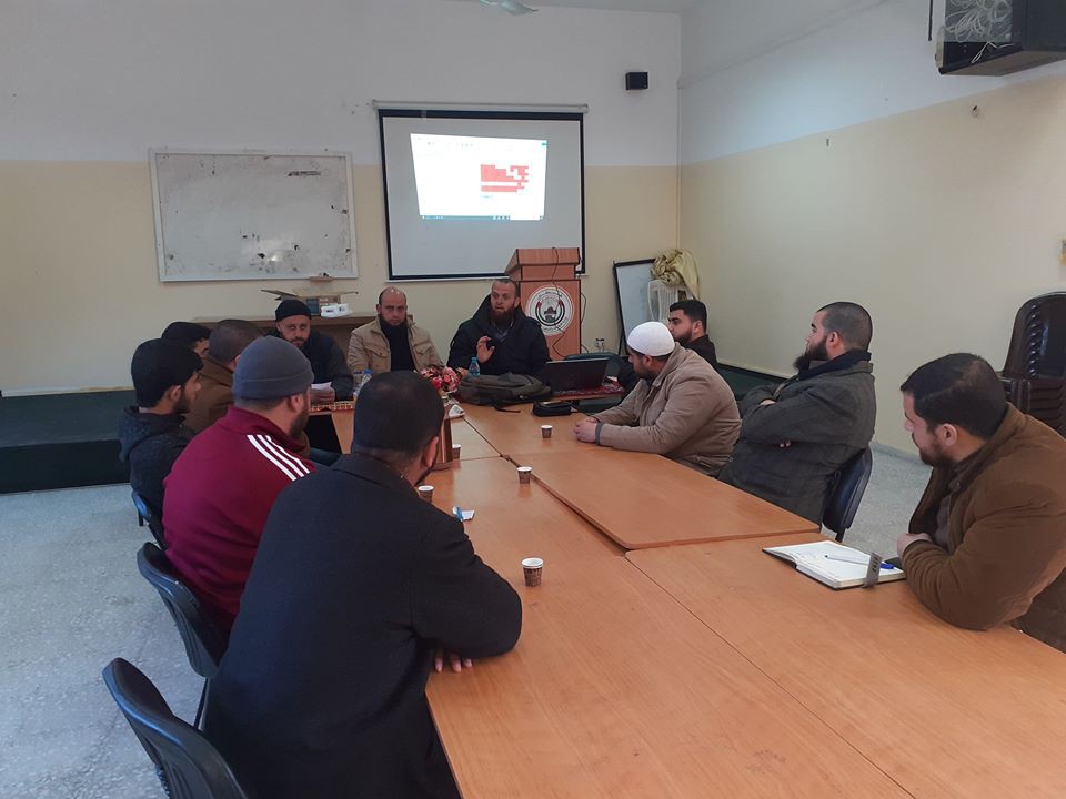 عقد قسم التحفيظ في مديرية أوقاف محافظة الشمال اجتماعا مع المحفظين في مقر المديرية بحضور مدير ديوان الحفاظ م. طارق أبو يونس و رئيس قسم التحفيظ بالمديرية الشيخ إبراهيم عصفورة ومشرف ديوان الحفاظ الشيخ محمد فريد نصير والشيخ احمد بهلول سكرتير دائرة التحفيظ