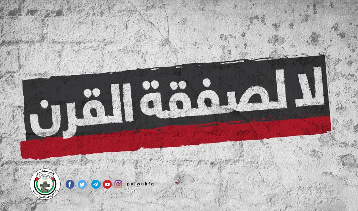 نددت وزارة الأوقاف والشئون الدينية بما يسمى صفقة القرن التي أعلن عنه الرئيس الأمريكي دونالد ترامب والتي تهدف بشكل رئيس إلى تصفية القضية الفلسطينية، وقضية القدس وإلغاء حق العودة للاجئين إلى ديارهم ووطنهم.