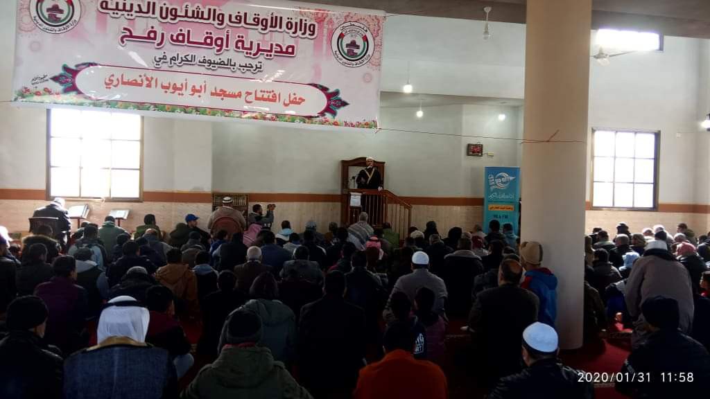 افتتح وكيل وزارة الأوقاف والشئون الدينية د. عبد الهادي الأغا في محافظة رفح، مسجد أبو أيوب الأنصاري, والذي تم إعادة بنائه بتبرع كريم من فاعل خير, وحضر حفل الافتتاح مدراء الأوقاف وعدد من قيادات وكوادر الدعوة في المنطقة وحشد من المصلين. وقال الأغا
