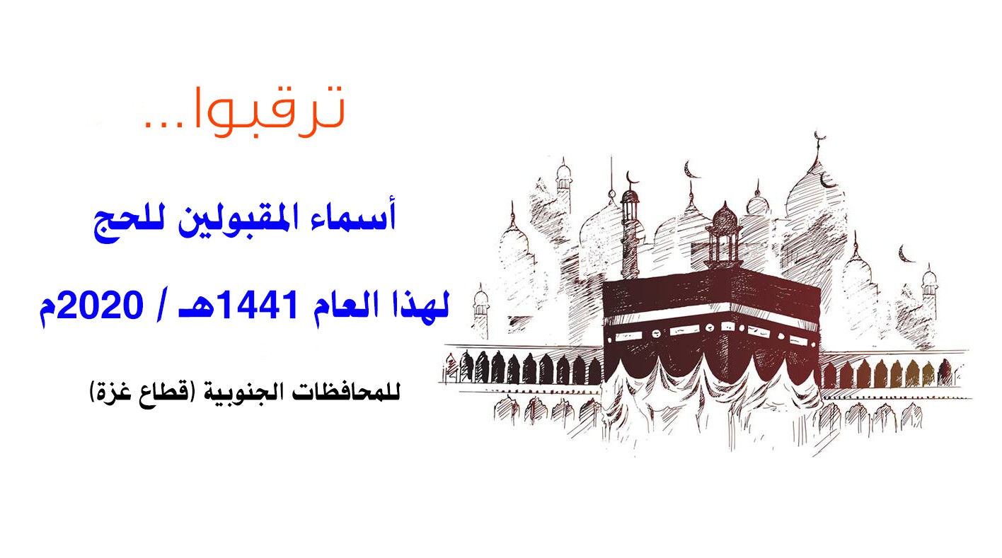 أعلنت وزارة الأوقاف والشؤون الدينية لجنة الحج أسماء حجاج المحافظات الجنوبية (قطاع غزة) المقبولين والمعتمدين للحج هذا العام 1441ه/2020م، وذلك وفقاً للكشف المسلسل ضمن القرعة العامة المجدولة, التي تم إجراؤها عام 2013م.