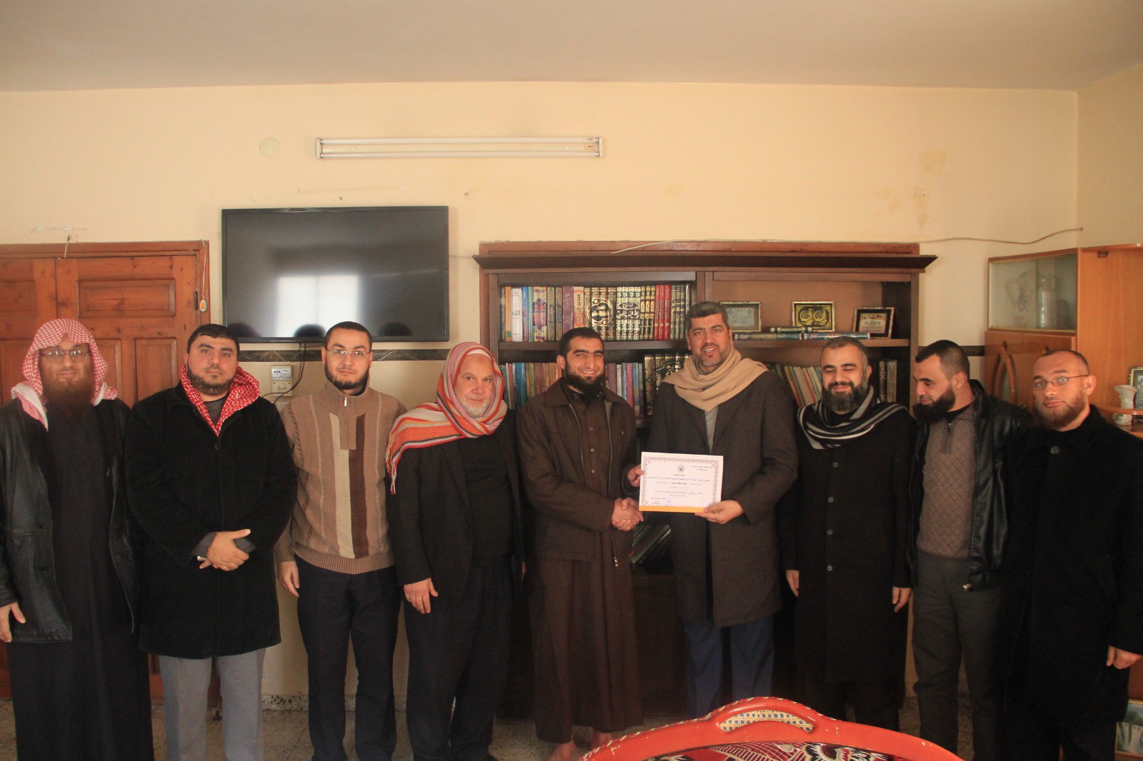 كرم قسم التحفيظ بمديرية أوقاف غزة وبالتعاون مع مسجد الصفا والمروة كوكبة من حفظة كتاب الله وخريجي الدورات العلمية خلال حفل أقامه بحضور أ. عبد اللطيف سالم رئيس قسم التحفيظ و أ. أحمد أبو رأس مشرف دورات الأحكام ولفيف من الأمراء والمحفظين بالمسجد. و