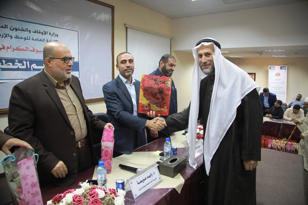 كرمت الإدارة العامة للوعظ والإرشاد التابعة لوزارة الأوقاف والشئون الدينية عددًا من الخطباء المتطوعين, خلال حفل أقامته في قاعة القدس بمقر بالوزارة بحضور ومشاركة وكيل وزارة الأوقاف د. عبد الهادي الأغا ومدير عام الوعظ د. وليد عويضة وممثلين عن الإدارات الع