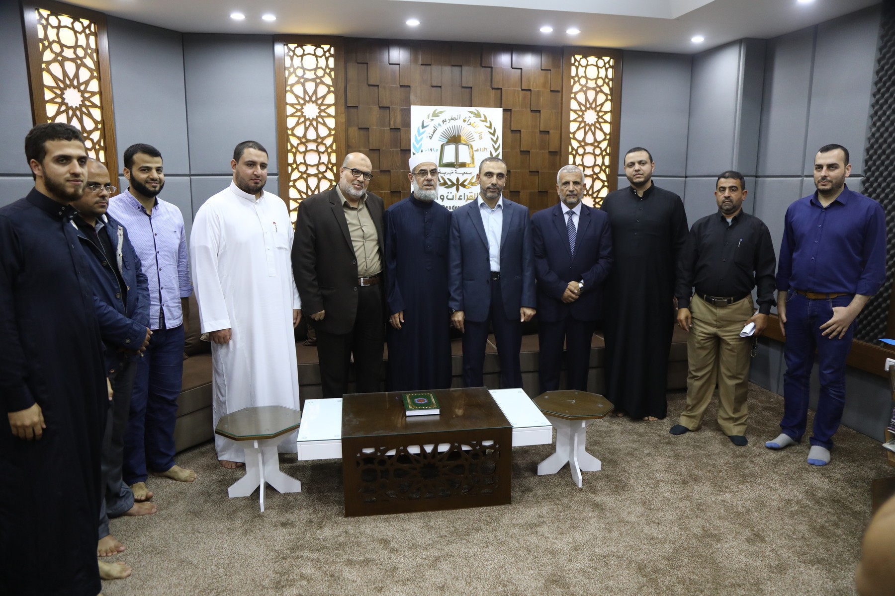 بحث وكيل وزارة الأوقاف والشئون الدينية د. عبد الهادي الأغا، سبل تعزيز التعاون المشترك مع رئيس دار القرآن الكريم والسنة د. عبد الرحمن الجمل، في مجال تحفيظ القرآن الكريم ورعاية الحلقات القرآنية في المساجد، وذلك خلال زيارة قام بها وكيل الوزارة لمقر دار ال