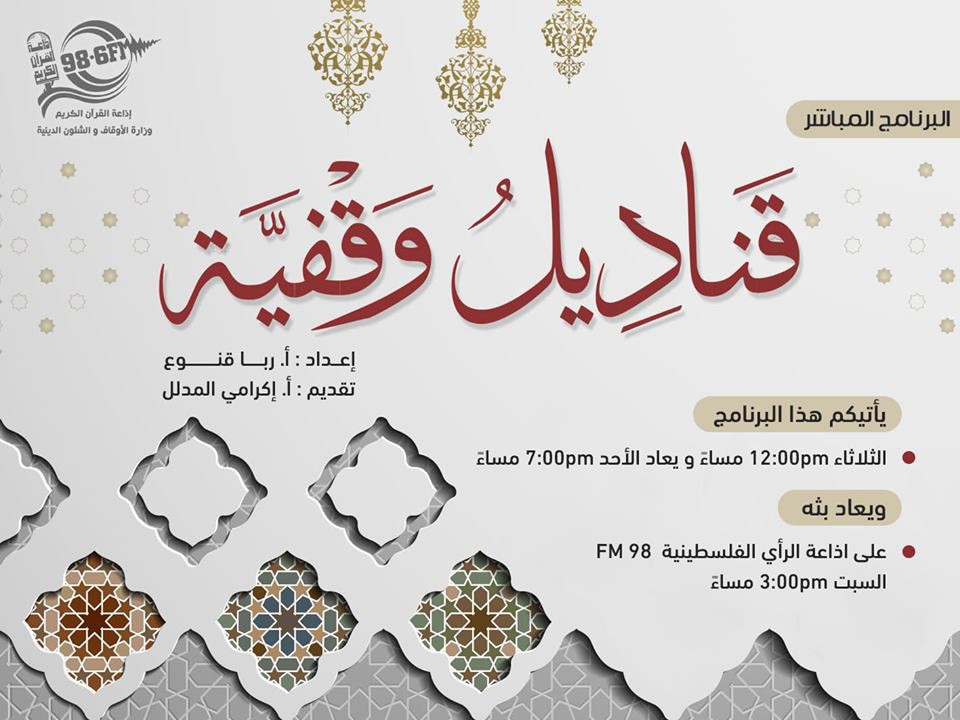 أطلقت إذاعة القرآن الكريم التابعة لوزارة الأوقاف والشئون الدينية على التردد (98.6) FM، دورتها البرامجية الشتوية الجديدة "غنيمة العابدين"، والتي تضم 25 برنامج متنوع ما بين مباشر ومسجل بالإضافة للسلاسل الدينية والمواعظ القصيرة والتلاوات القرآنية.