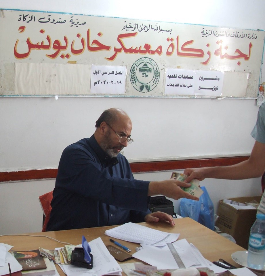 زكاة معسكر خان يونس توزع مساعدات مالية علي 200 طالب وطالبة