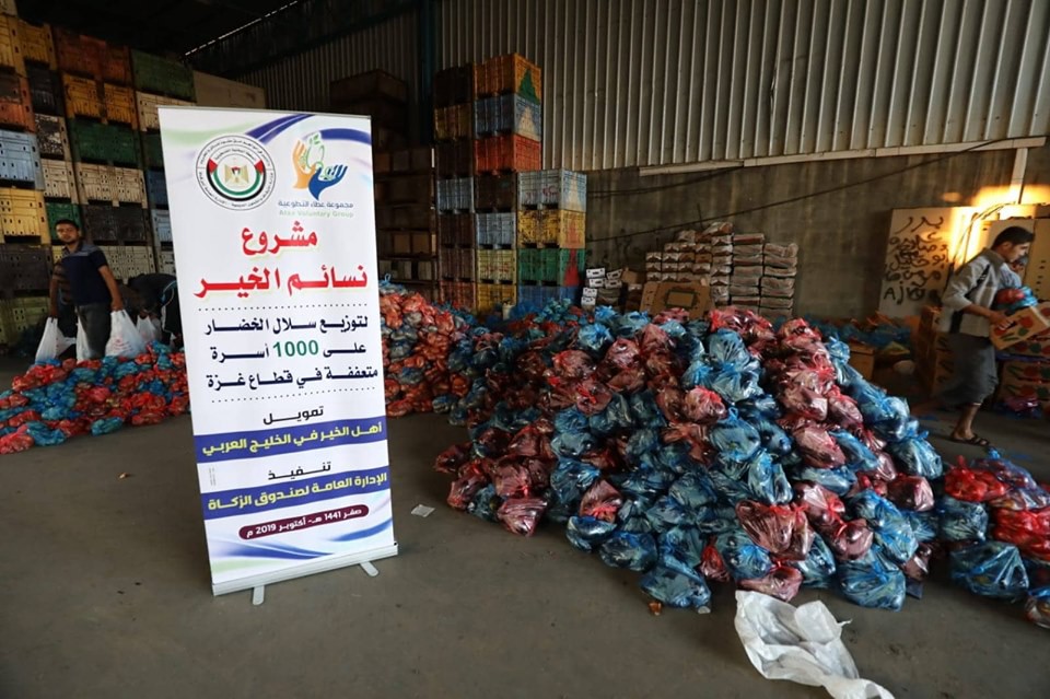 وزعت الادارة العامة للزكاة التابعة لوزارة الأوقاف والشئون الدينية سلال خضار علي 1000 اسرة فقيرة من مختلف محافظات غزة وذلك بتمويل كريم من مجموعة عطاء التطوعية. وأوضح مدير عام الادارة العامة للزكاة أ. اسامة اسليم أن كل سلة تحتوي على 11 صنف من الخ