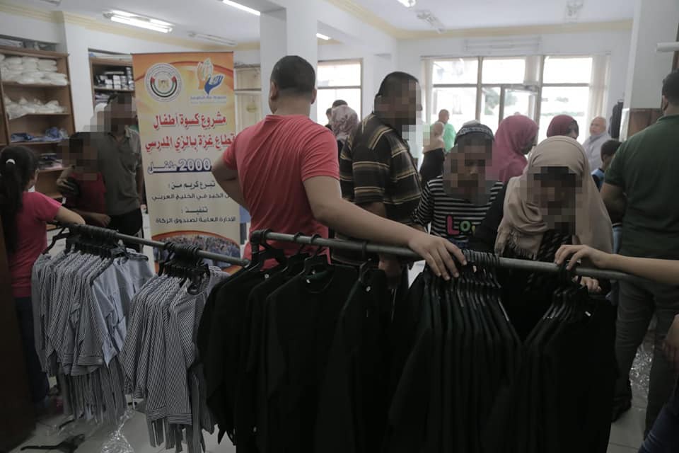 نفذت الإدارة العامة للزكاة التابعة لوزارة الأوقاف والشئون الدينية، مشروع كسوة الأطفال بالزي المدرسي الذي استفاد منه نحو 2000 طالب وطالبةً من الأسر الفقيرة من جميع محافظات قطاع غزة، وذلك بتمويل من مجموعة عطاء التطوعية.