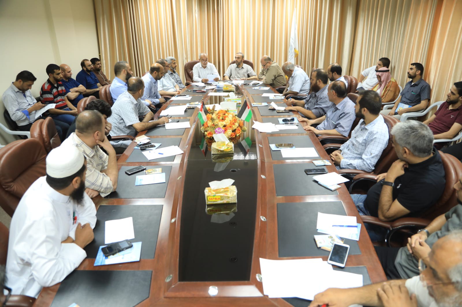 عقدت وزارة الأوقاف والشئون الدينية اجتماعا بأعضاء بعثة الحج الإدارية، لبحث الترتيبات الخاصة بموسم الحج لهذا العام 1440هـ، بحضور ومشاركة وكيل وزارة الأوقاف د. عبد الهادي الآغا ومدير عام الحج أ. عادل صوالحة، ومدير عام الشئون الإدارية د. وليد عويضة.