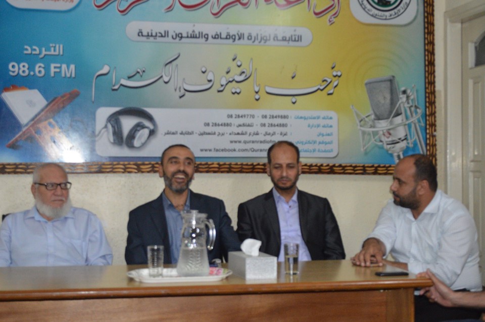 استقبل مدير إذاعة القرآن الكريم التابعة لوزارة الأوقاف والشئون الدينية د. عادل الهور وفداً من هيئة التوجيه السياسي والمعنوي في غزة برئاسة أ. عزات السويركي مدير إدارة التوجيه والإرشاد بالهيئة. بدوره رحب الهور بالوفد الزائر, مستعرضًا خلال اللقاء