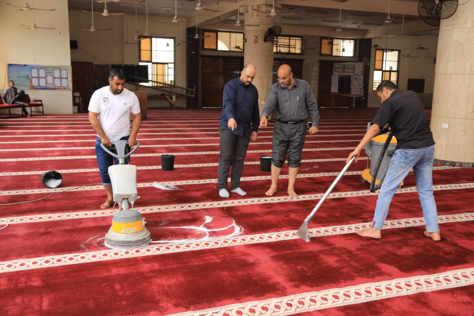 الأوقاف تشرع بحملة لغسيل موكيت المساجد المركزية في القطاع