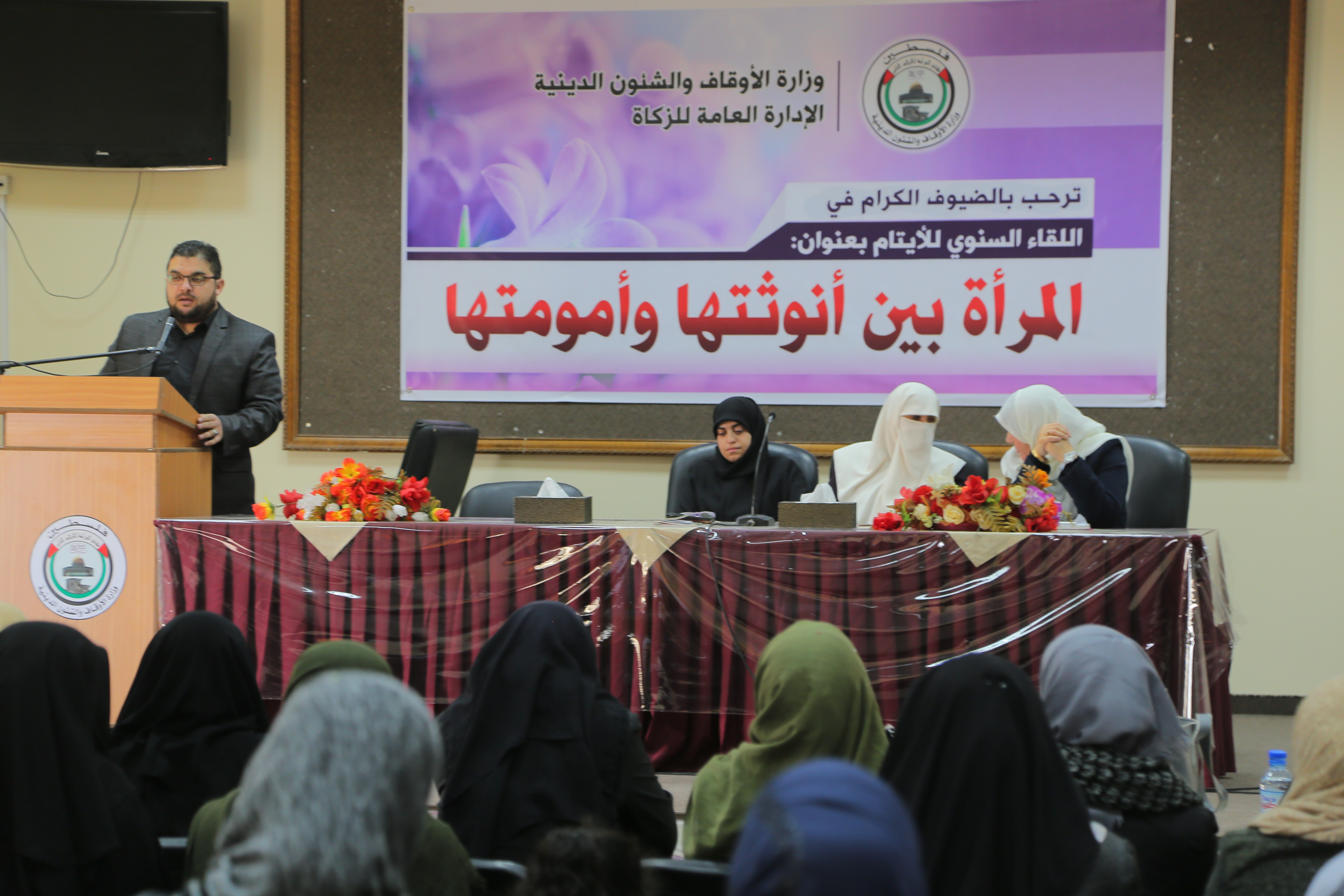 عقدت وزارة الأوقاف والشئون الدينية اللقاء السنوي للأيتام بعنوان " المرأة بين أنوثتها وأمومتها", وذلك في قاعة القدس بالوزارة بحضور ومشاركة كل من مدير البحث الاجتماعي بالزكاة حاتم الهسي ومدير عام العمل النسائي كفاح الرملي, و مدربة التنمية البشرية بقسم ال