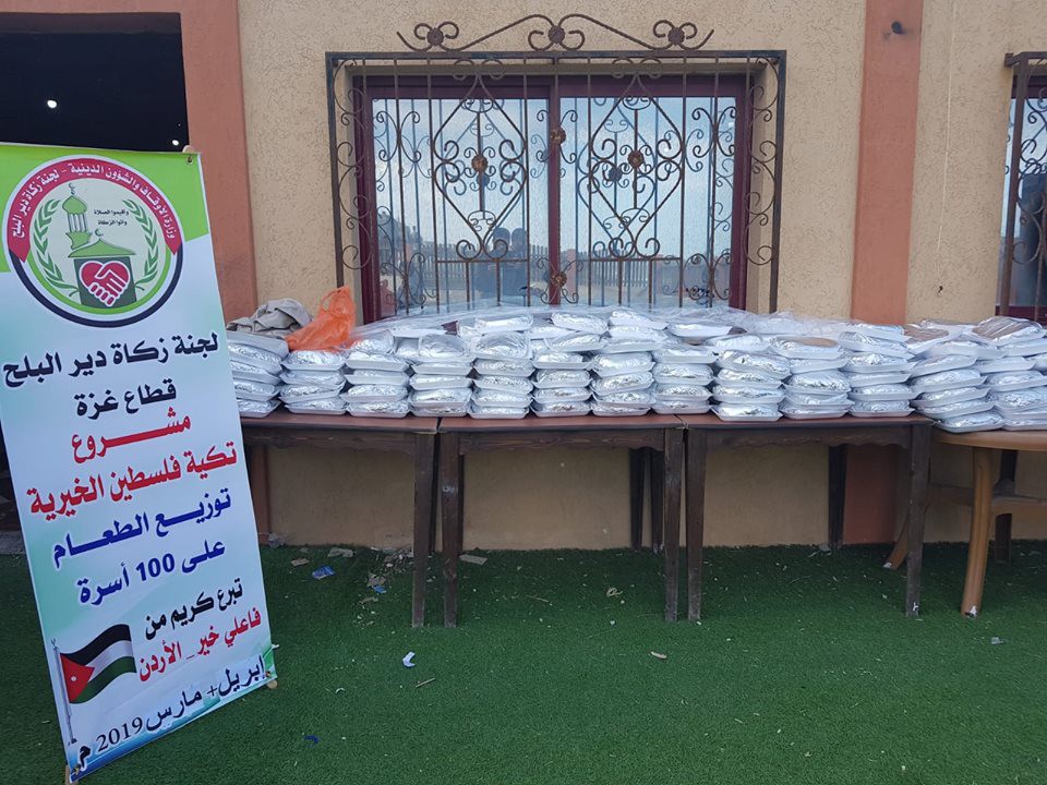 وزعت تكية غزة الخيرية التابعة للجنة زكاة دير البلح ، 270 وجبة طعام مكونة من "الأرز والدجاج المشوي" على عدد (100) أسرة من الأسر المستورة في مدينة دير البلح، بتبرع كريم من فاعلين خير بالمملكة الأردنية الهاشمية. وأكدت اللجنة أن التكية تعمل وفق الأ