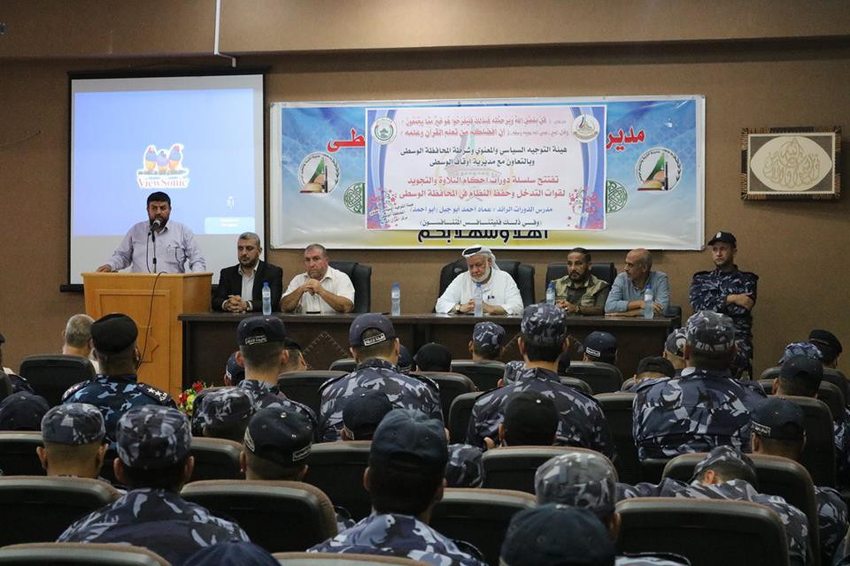 افتتحت دائرة المقارئ بقسم التحفيظ بأوقاف الوسطى عدد من دورات أحكام التلاوة والتجويد ما بين تأهيلية وعليا لكافة أفراد جهاز التدخل وحفظ النظام بالمحافظة. بدورة أكد مدير أوقاف الوسطى أحمد أبو حمد أن القرآن يبصرنا ويعلمنا أن لا يتخذ المؤمنين الكافر