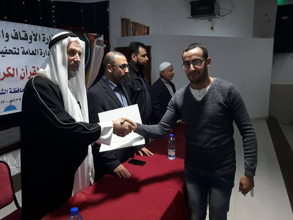 عقد قسم التحفيظ بمديرية أوقاف الشمال حفل تكريم حفظة القران الكريم وأجزاء منه لعام 2017 م بحضور مدير عام الإدارة العامة للتحفيظ أ.عبد الهادي الأغا ومدير التحفيظ أ. عماد الدجني ومدير أوقاف الشمال الشيخ عبد القادر سالم.