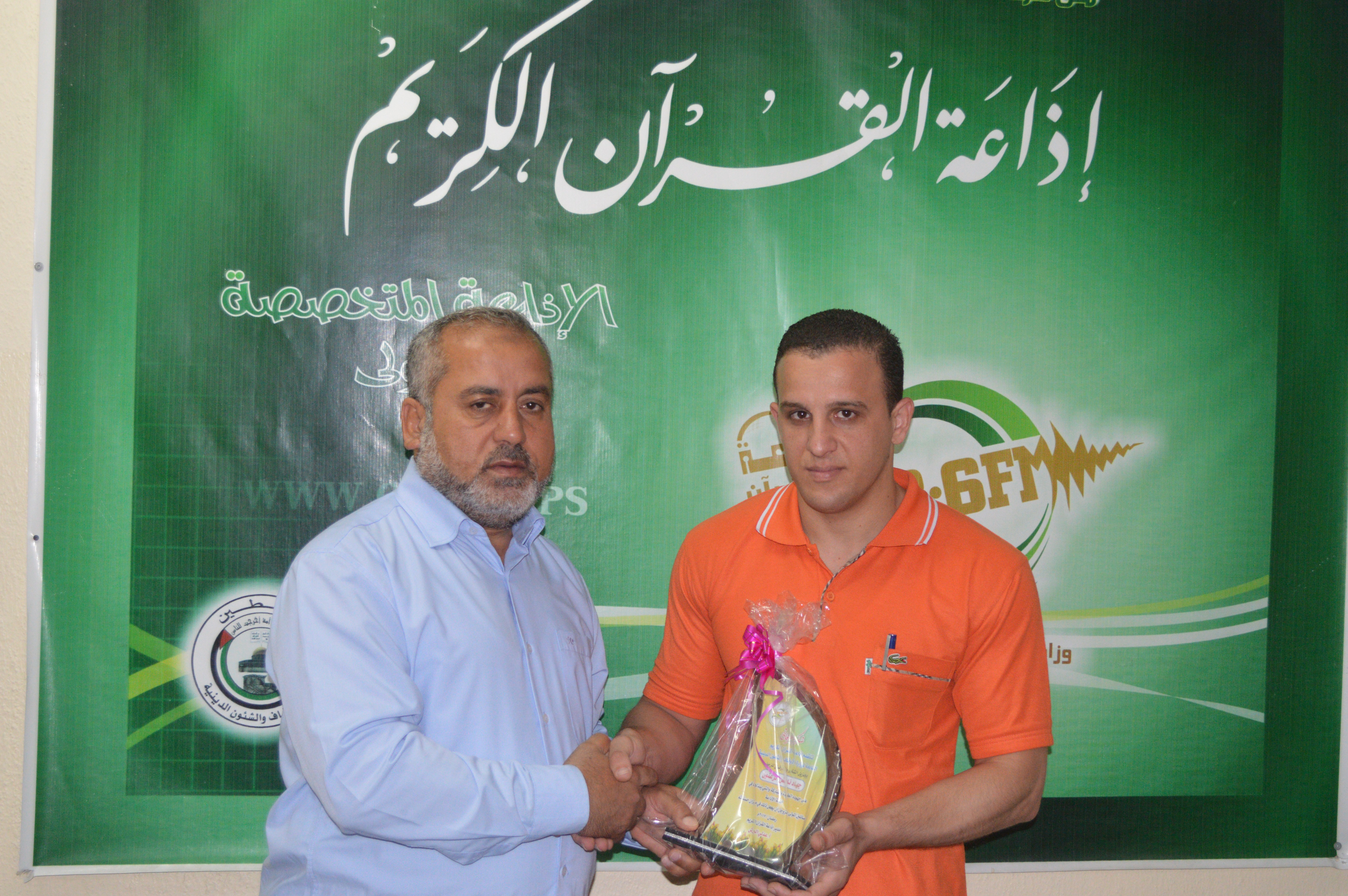 كرمت إذاعة القرآن الكريم التابعة لوزارة الأوقاف والشئون الدينية أ. جهاد الزعنون من دائرة الحاسوب بوزارة الأوقاف.