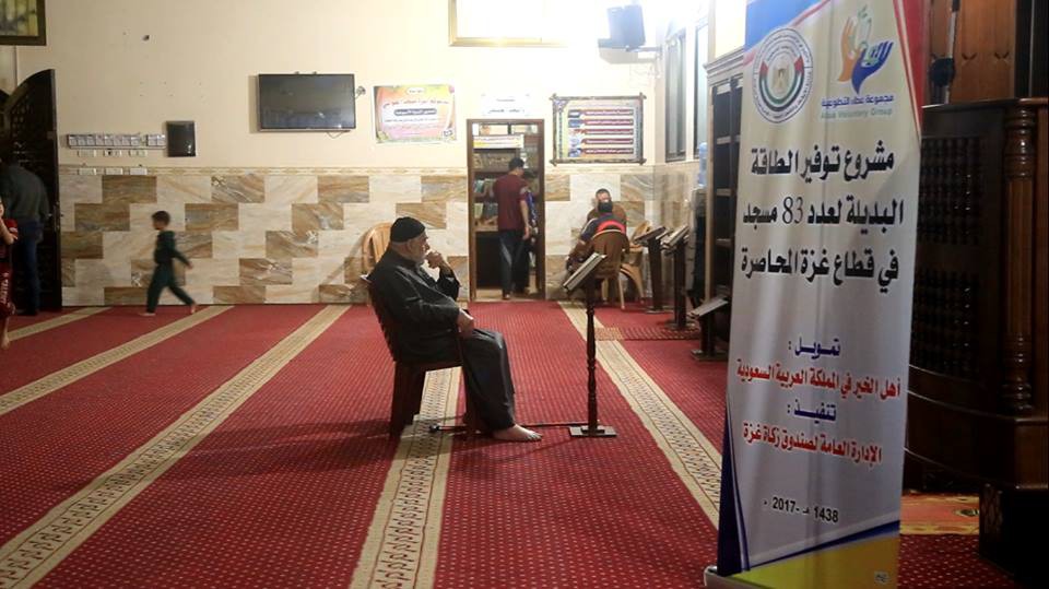 نفذت الإدارة العامة للزكاة مشروع الطاقة البديلة لعدد 83 مسجداً من مساجد قطاع غزة التي لا يوجد بها طاقة بديلة للإنارة وذلك بتمويل كريم من مجموعة عطاء التطوعية