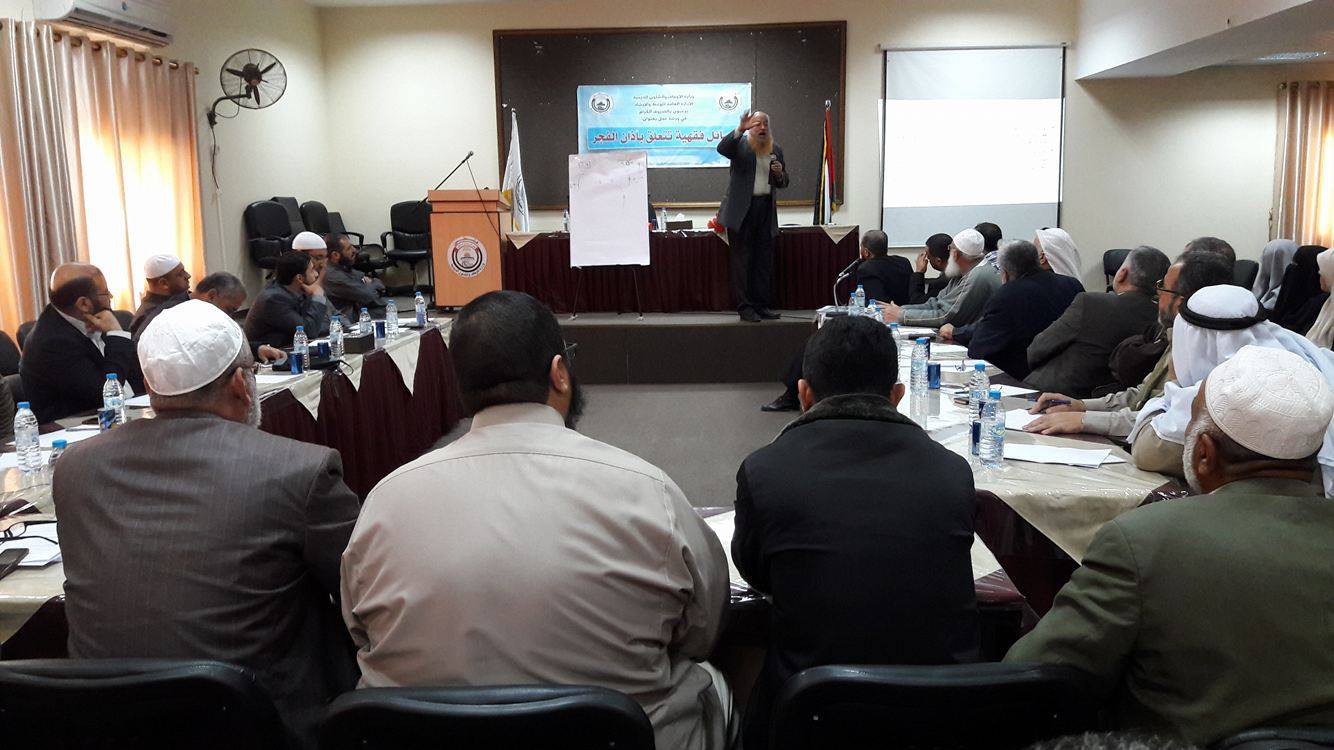 عقدت الإدارة العامة للوعظ والإرشاد التابعة لوزارة الأوقاف ورشة عمل بعنوان " مسائل فقهية تتعلق بآذان الفجر", في قاعة القدس بمقر الوزارة بحضور ومشاركة مدير عام الوعظ د. يوسف فرحات ومدراء الأوقاف ولفيف من العلماء ورجال الدين وذوي الاختصاص. وأوضح
