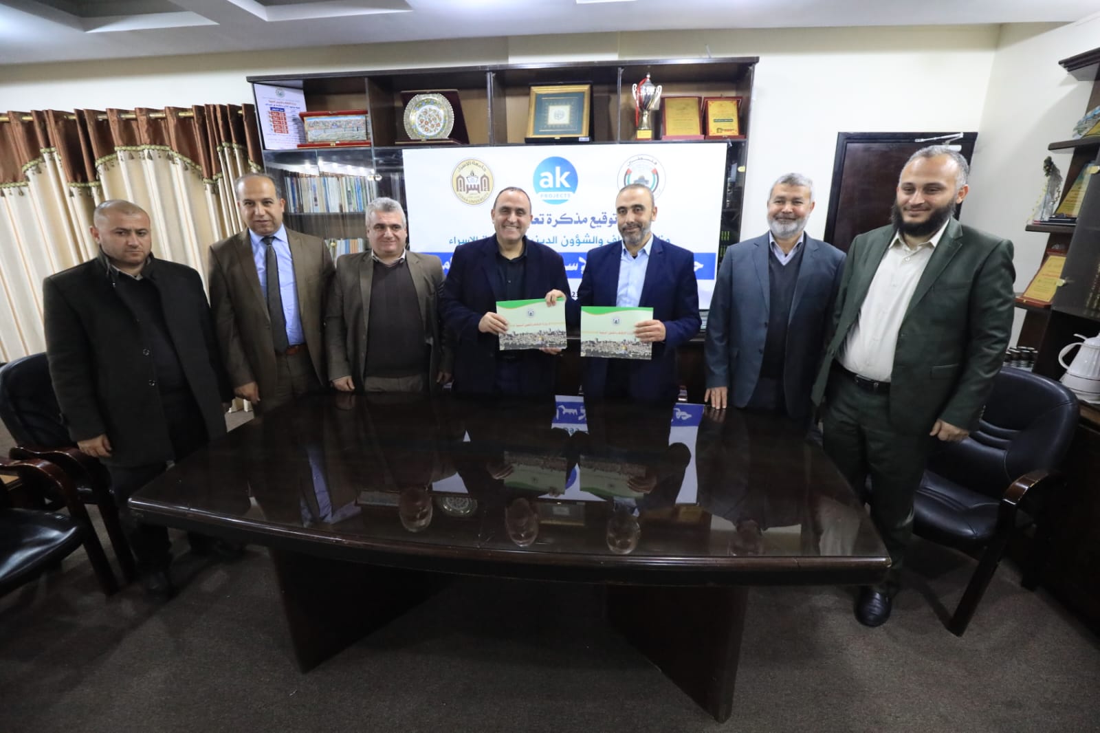 وقع وكيل وزارة الأوقاف والشؤون الدينية د. عبد الهادي الأغا مع رئيس جامعة الإسراء بغزة د. عبد الخالق الفرا مذكرة تفاهم لبناء مسجد داخل مقر الجامعة, بتمويل كريم من مجموعة (AK) الخيرية.