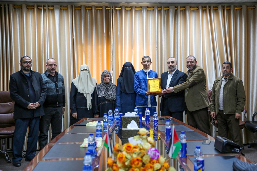 كرّم وكيل وزارة الأوقاف والشؤون الدينية د. عبد الهادي الأغا الطالب بمدرسة الأوقاف الشرعية للبنين أحمد الزعبوط؛ وذلك تقديرًا لتميزه وتفوقه في مجال التصميم والمونتاج وإنتاج الأفلام الكرتونية، ومشاركته في العديد من المسابقات العربية والدولية، وحصوله على المراكز المتقدمة.