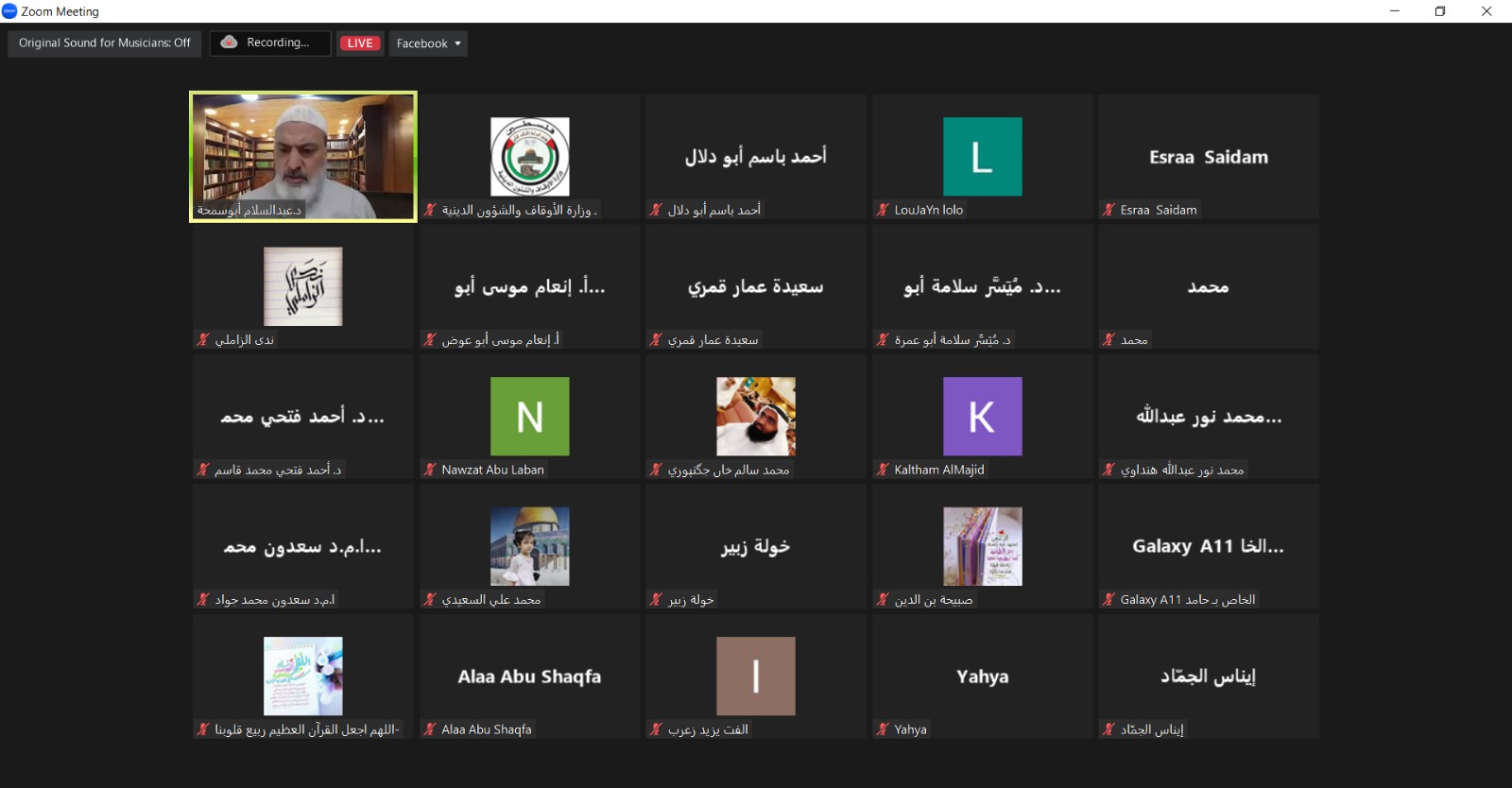 نفّذت الدائرة العلميّة بوحدة التعليم الشرعيّ في وزارة الأوقاف والشؤون الدينيّة محاضرة علميّة بعنوان: (المنهج النبويّ في العلاقات الأسريّة) عبر تطبيق الزوم، استهدفت 135 من طلبة العلم الشرعيّ داخل فلسطين وخارجها، بواقع ساعتين تدريسيّة.