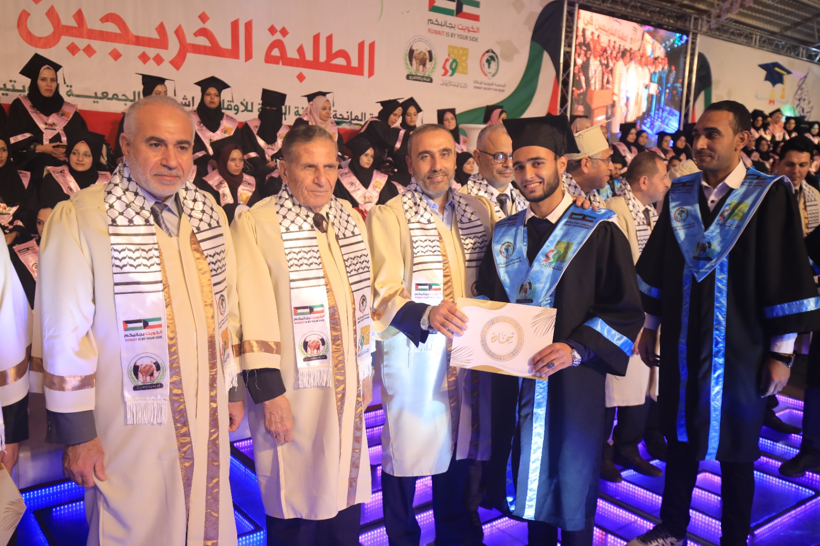 نفذت لجنة زكاة الدرج التابعة لوزارة الاوقاف والشؤون الدينية حفل مشروع تحرير شهادات الخريجين في قطاع غزة الذي ضم 305 خريج وخريجة من مختلف تخصصات البكالوريس، في منتجع الشاليهات غرب مدينة غزة, بدعم من الأمانة العامة للأوقاف وإشراف الجمعية الكويتية للإغاثة.