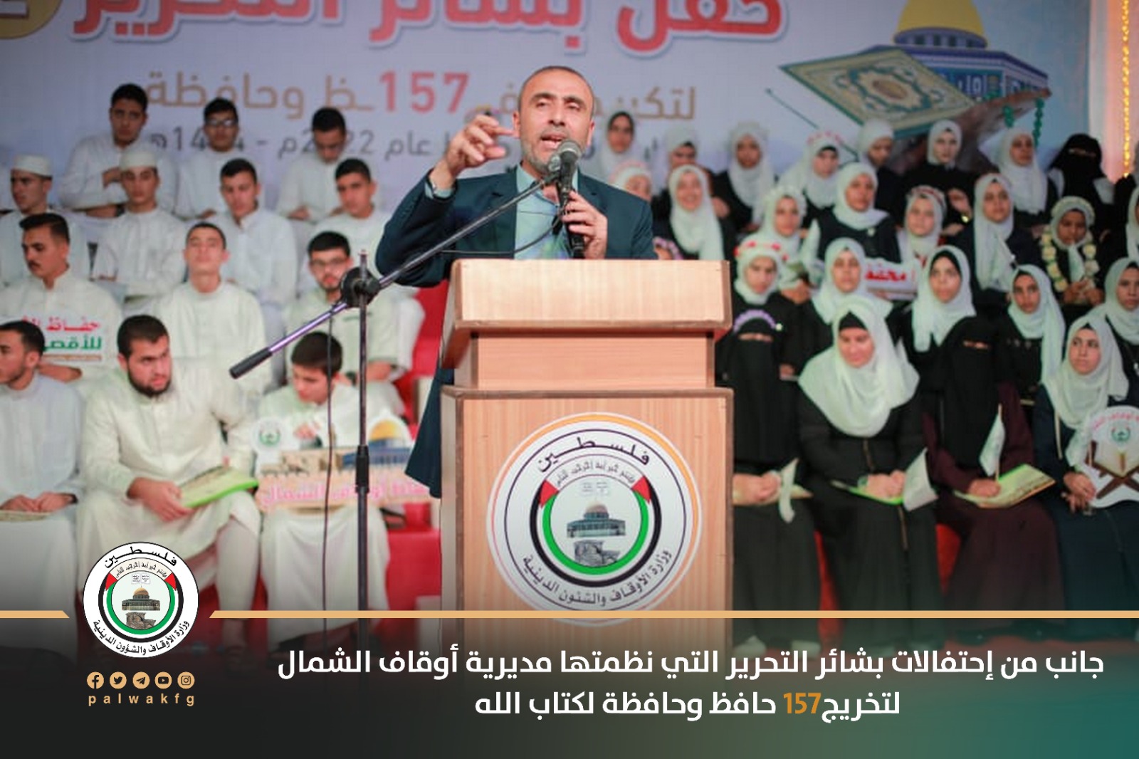 خرجت مديرية أوقاف الشمال 157 حافظ وحافظة لكتاب الله تعالى خلال العام 2022م، وذلك خلال حفل نظمته في مدرسة حمد بن خليفة الثانوية للبنات بالمحافظة بحضور ومشاركة وكيل وزارة الأوقاف د. عبد الهادي الأغا ومدير عام المديريات أ. منذر الغماري ومدير عام القرآن الكريم د. محمد سالم، ورئيس جمعية الفلاح الخيرية أ.محسن رمضان طنبورة، ولفيف من الشخصيات الاعتبارية والدعوية ونواب التشريعي وذوي المحتفى بهم.