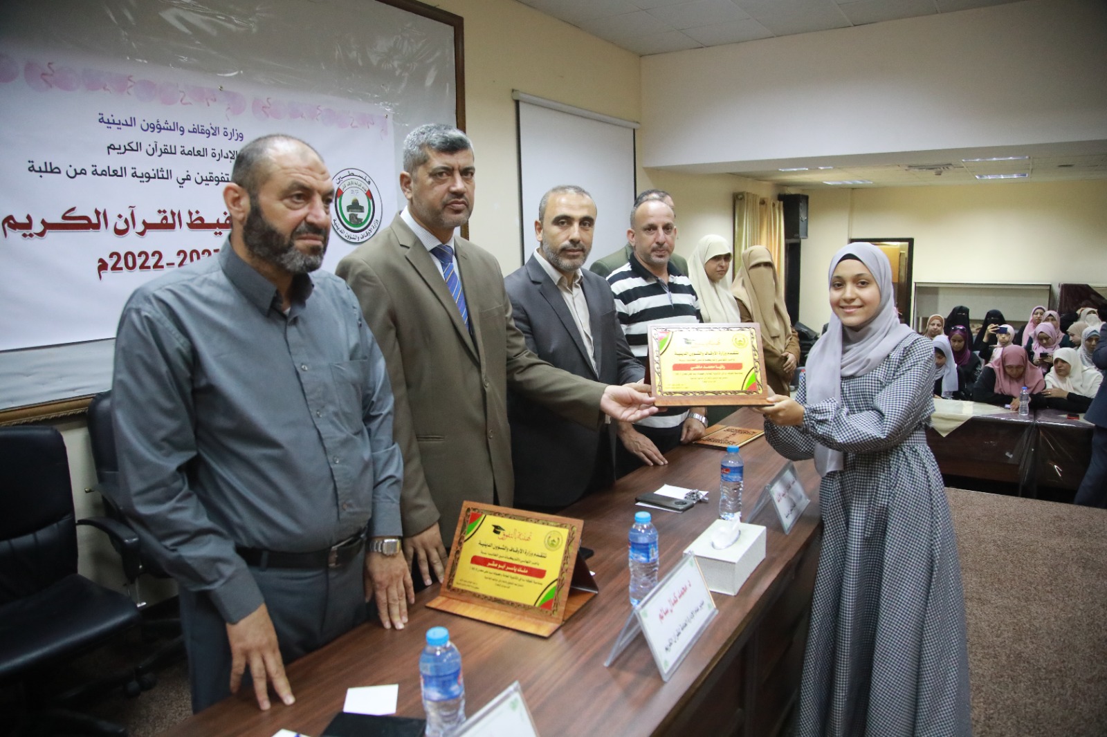 كرمت الإدارة العامة للقرآن الكريم بوزارة الأوقاف والشؤون الدينية المتفوقين في الثانوية العامة من طلبة مراكز تحفيظ القرآن الكريم، خلال حفل نظمته في قاعة القدس بمقر الوزارة، بحضور وكيل وزارة الأوقاف د. عبد الهادي الأغا، ومدير عام العلاقات العامة والإعلام أ. أنور أبو شاويش، ومدير عام الإدارة العامة للقرآن الكريم د. محمد سالم, ومدير عام المديريات أ. منذر الغماري