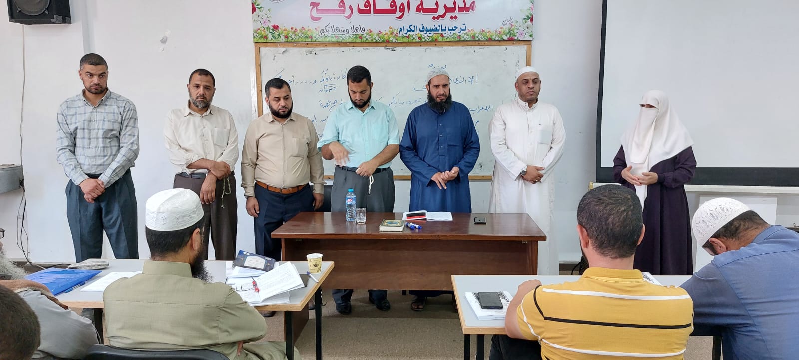 عقد قسم العمل النسائي بمديرية أوقاف رفح لقاءً تثقيفياً صحياً بالتعاون مع جمعية الهلال الأحمر، لطالبات المخيمات القرآنية في مسجد بدر غرب المحافظة, بمشاركة رئيس القسم أ. زمزم زعرب.