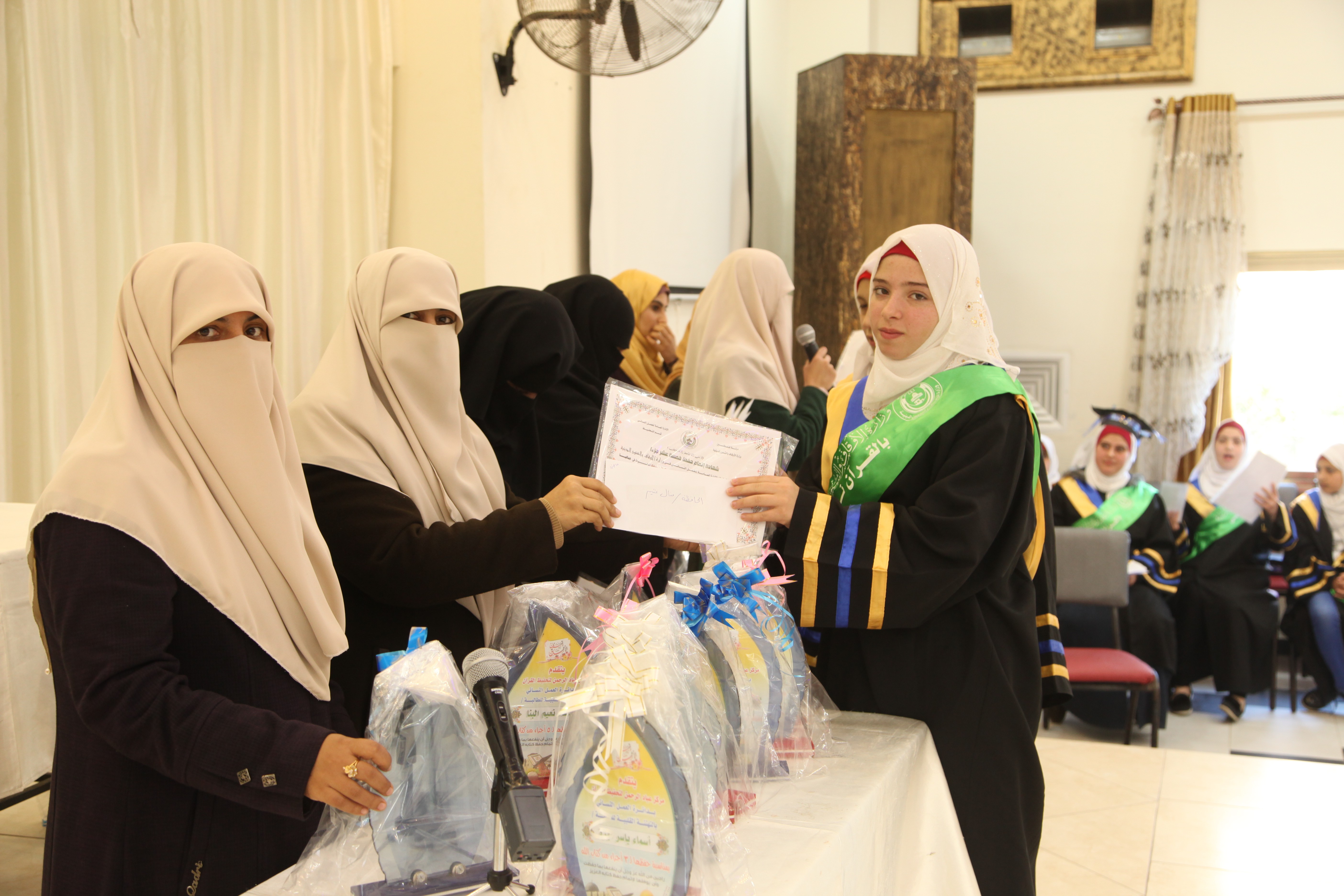 نظم قسم التحفيظ في الإدارة العامة للعمل النسائي حفل تكريم خاص بطالبات مركز "عباد الرحمن" في صالة مونتانا بحضور رئيس القسم مها الشوبكي ورئيس الشعبة أمل اشتيوي ومشرفة الشمال أسماء الملفوح وعدد من الإداريات والمحفظة القائمة على الحفل خديجة العسلي.