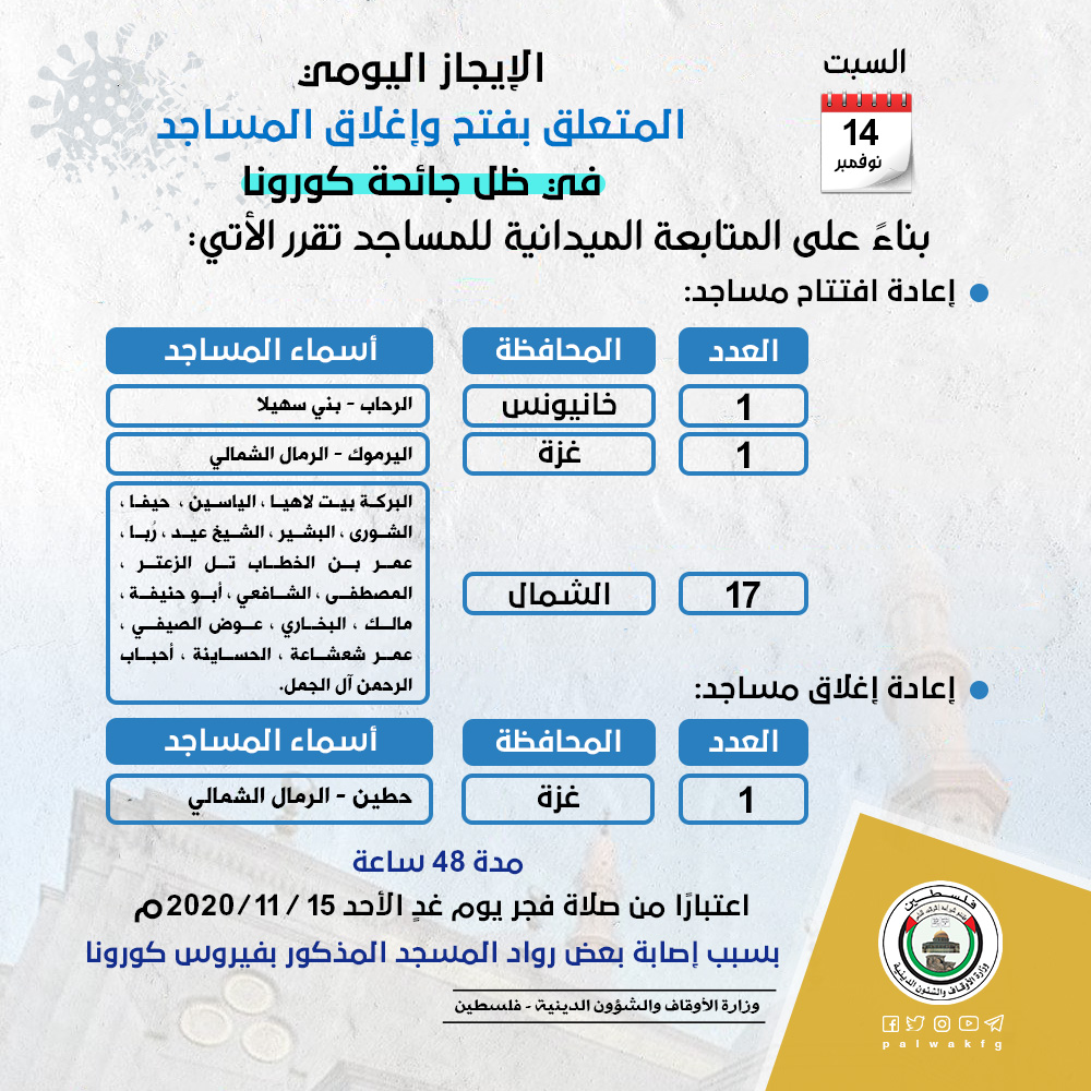 الأوقاف تُعيد افتتاح 19 مسجدًا في غزة وخانيونس والشمال، وتُغلق مسجدًا في غزة
