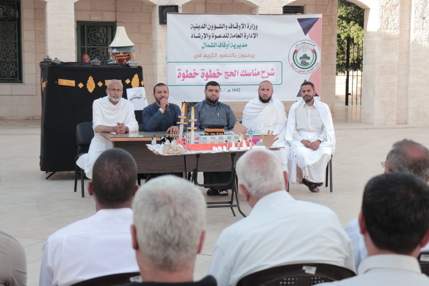 عقد قسم الدعوة والإرشاد بمديرية أوقاف الشمال لقاءً لشرح مناسك الحج والعمرة لحجاج المحافظة باستخدام مجسمات توضيحية للأماكن المقدسة والمشاعر, بهدف ترسيخ المفاهيم المتعلقة بمناسك الحج والعمرة لديهم.