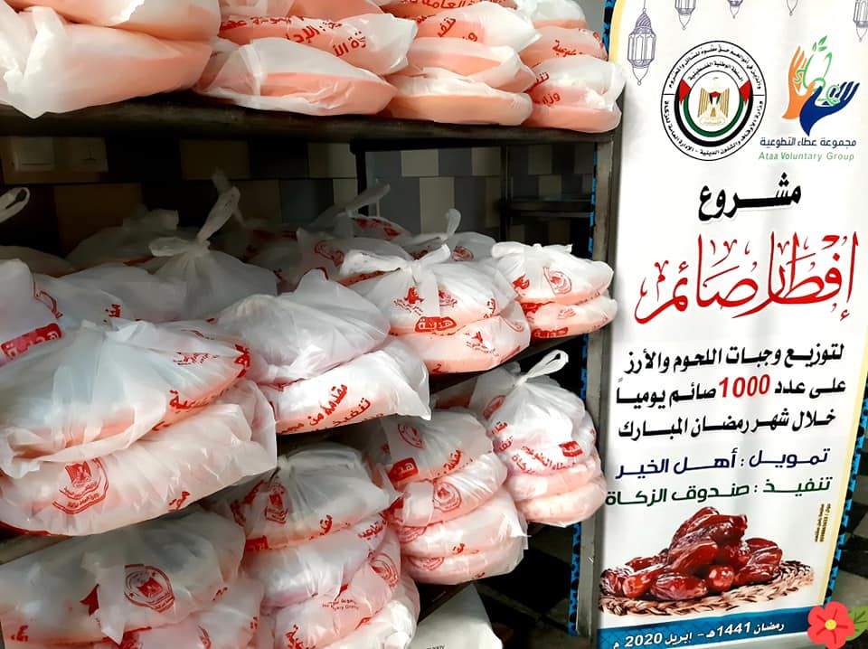 شرعت الإدارة العامة للزكاة التابعة لوزارة الأوقاف والشئون الدينية بتنفيذ مشروع إفطار أكثر من (30.000) صائم خلال شهر رمضان المبارك، بواقع (1000) صائم يوميًا على مدار الشهر الفضيل، وذلك بدعم كريم من مجموعة عطاء التطوعية.