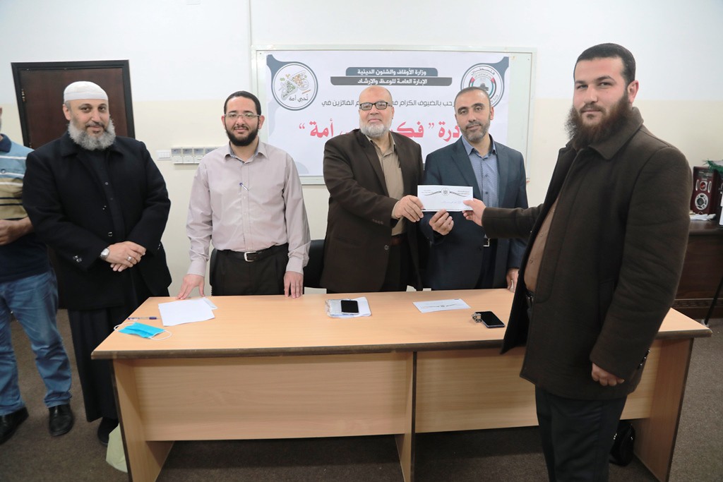كرمت الإدارة العامة للوعظ والإرشاد بالأوقاف الفائزين في مبادرة "فكرة تحيي أمة" التي استهدفت الخطباء والدعاة والواعظات, وذلك خلال حفل نظمته الوزارة في قاعة الشيخ حمدي مدوخ بمقر الوزارة بحضور وكيل وزارة الأوقاف د. عبد الهادي الاغا ومدير عام الوعظ د. وليد عويضة, ونائب مدير عام الوعظ د. عبد الله أبو عليان ومدير دائرة بحوث الدعوة الشيخ وفا عياد.