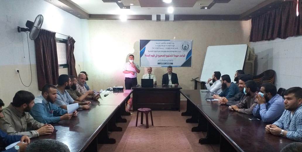 نفذت دائرة الوعظ والإرشاد بوزارة الأوقاف والشؤون الدينية دورة تدريبية بعنوان "الفهم الصحيح للسنة النبوية", استهدفت قرابة (200) خطيب وإمام على مستوى القطاع, بالتعاون والتنسيق مع أقسام الوعظ بمديريات الأوقاف الخمس.