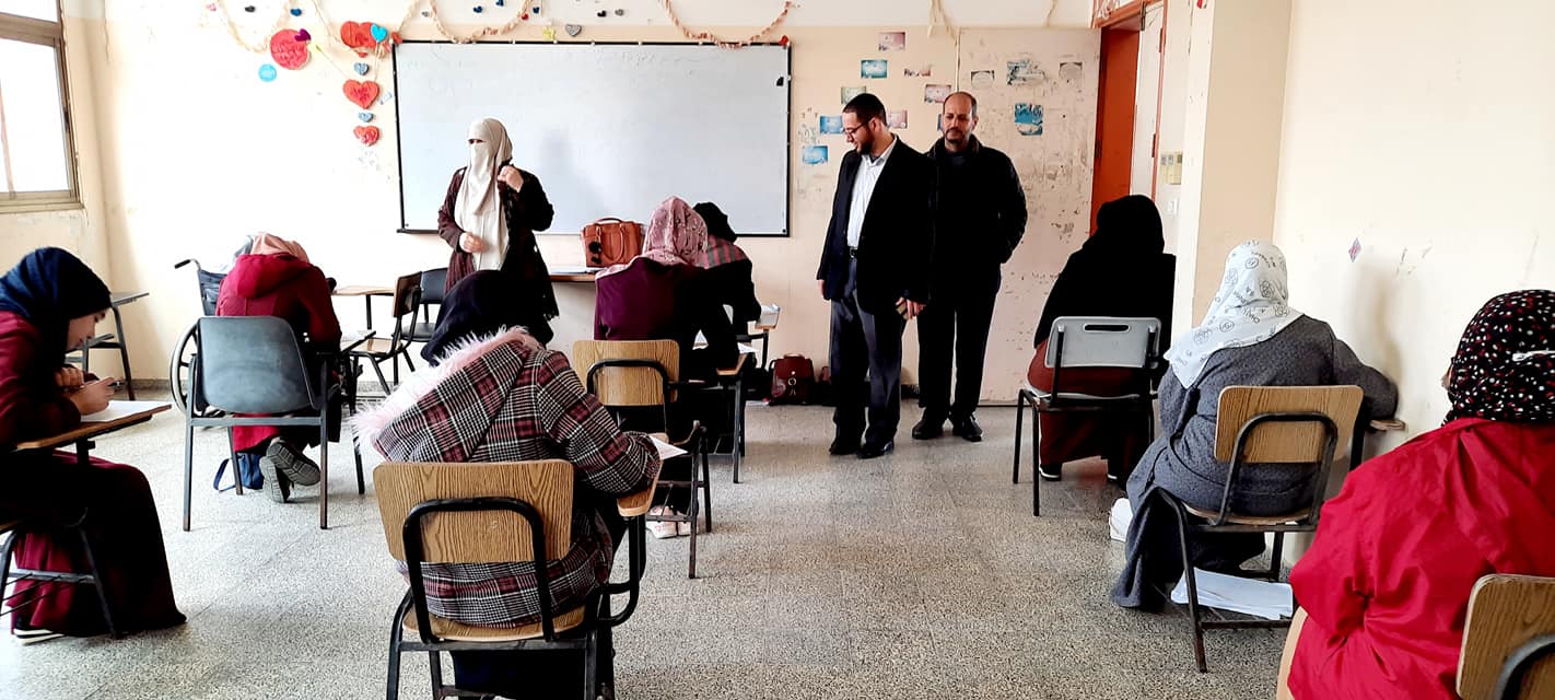 تفقد عميد كلية الدعوة الإسلامية التابعة لوزارة الأوقاف والشؤون الدينية د. عبدالله أبو عليان سير الاختبارات النصفية للفصل الدراسي الثاني 2022م، والاطلاع على الاجراءات والترتيبات الخاصة بالامتحانات, رافقه فيها النائب الأكاديمي د. أحمد مشتهى، والنائب الإداري د. عادل الهور.