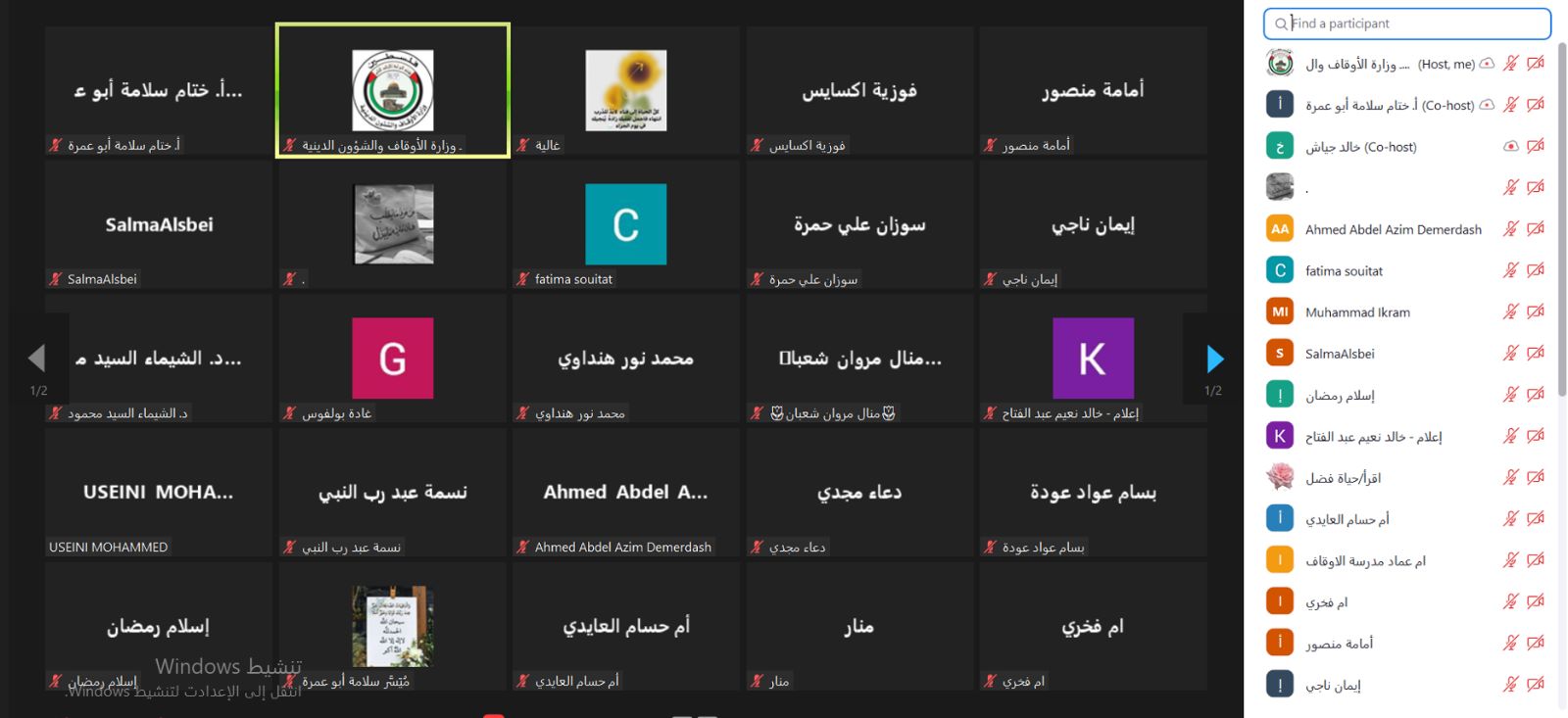 نفّذت الدائرة العلميّة بوحدة التعليم الشرعيّ في وزارة الأوقاف والشؤون الدينيّة محاضرةً علميّةً بعنوان (الطغيان الإنساني في القرآن الكريم)، عبر تطبيق الزوم، استهدفت 65 من طلبة العلم الشرعيّ داخل فلسطين وخارجها، بواقع ساعتين تدريسية، ألقاها رئيس أكاديمية القراء في السودان د. خالد الجياش.