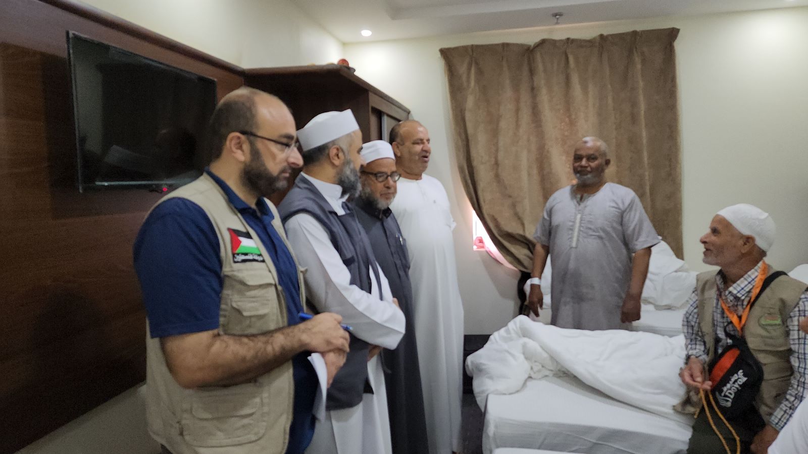 تفقدت بعثة الحج الفلسطينية التابعة لوزارة الأوقاف والشؤون الدينية - بجميع طواقمها - حجاج قطاع غزة في الفنادق التي يقيمون بها بمكة المكرمة، وتجولت على غرفهم، للاطمئنان على أحوالهم والاستماع إليهم، والإجابة على استفساراتهم.